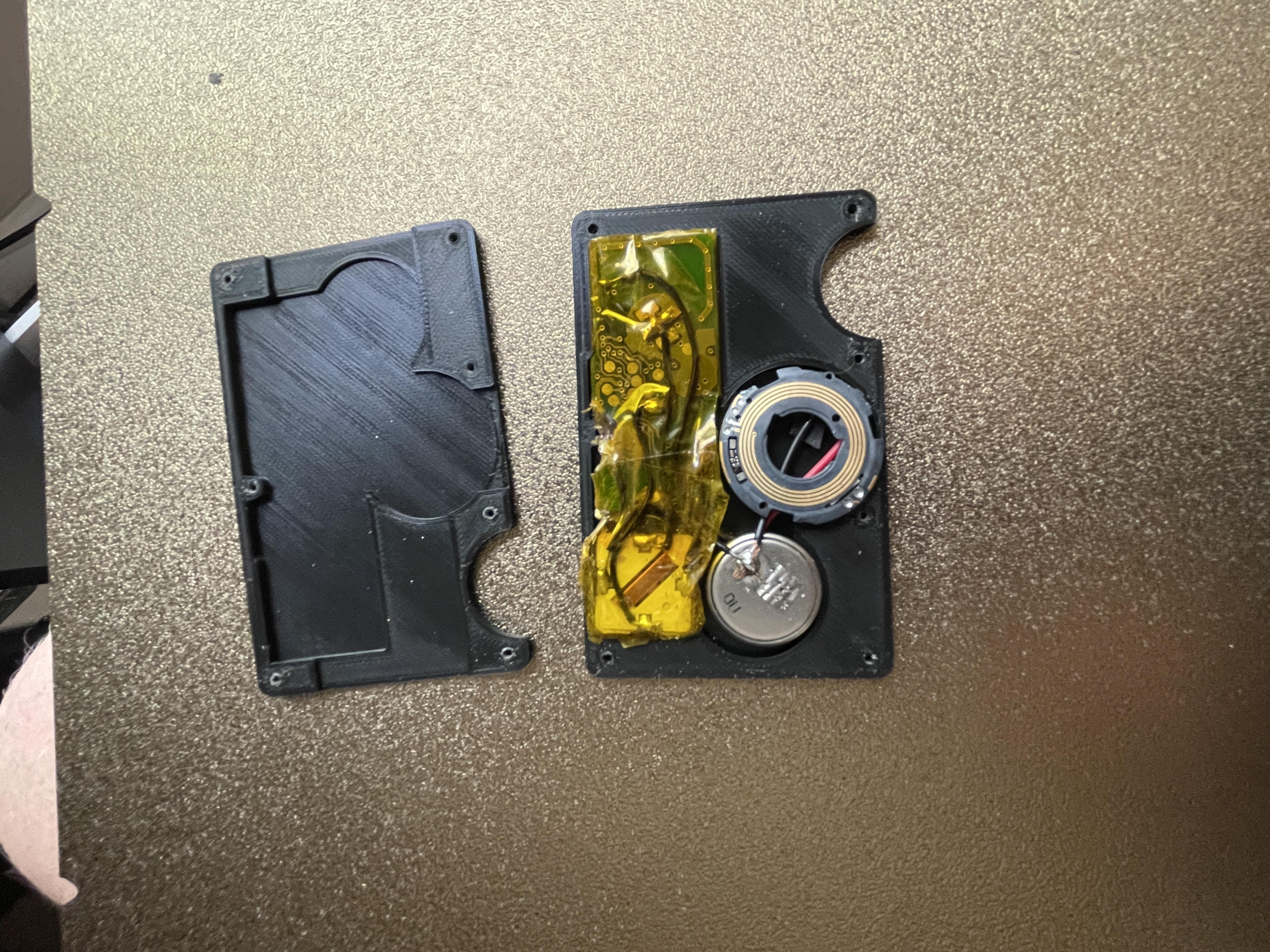 3D printed Ridge Wallet side plate with car key & AirTag embedded