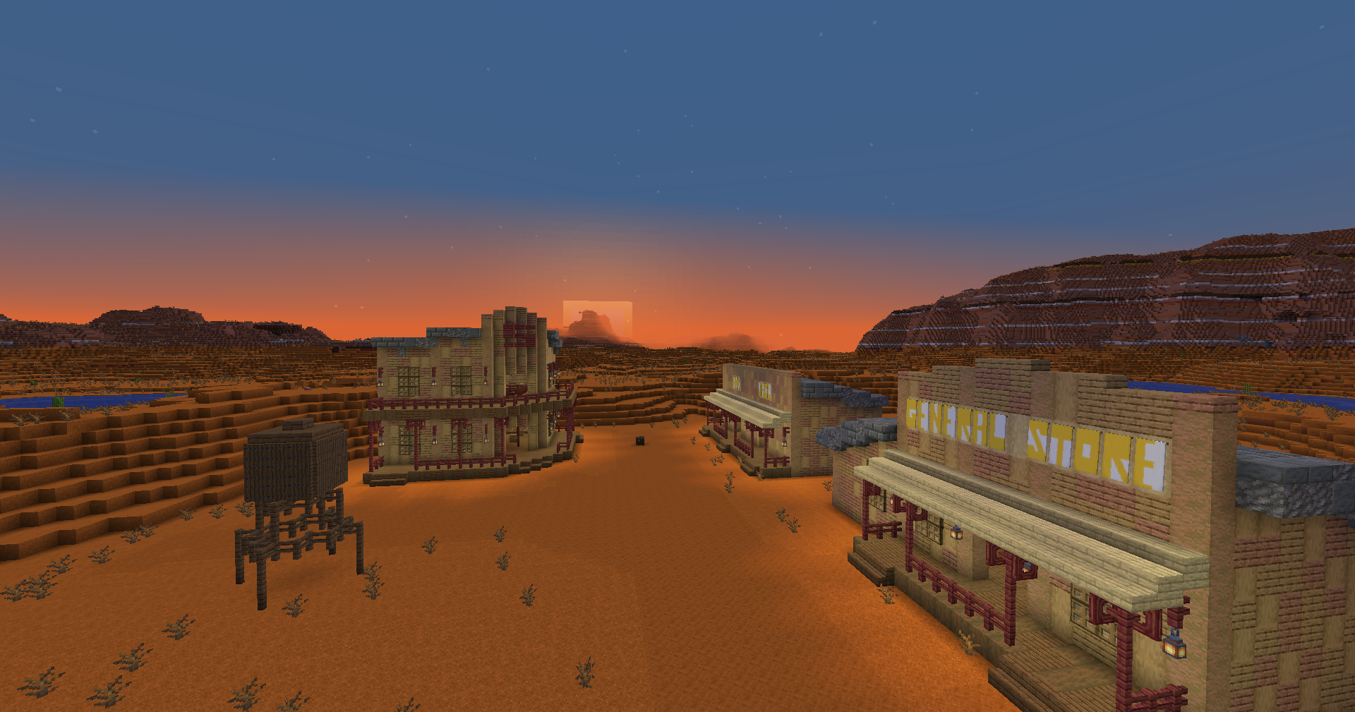 Biome Build #03 Badlands | Old western town with implied housing off-screen.