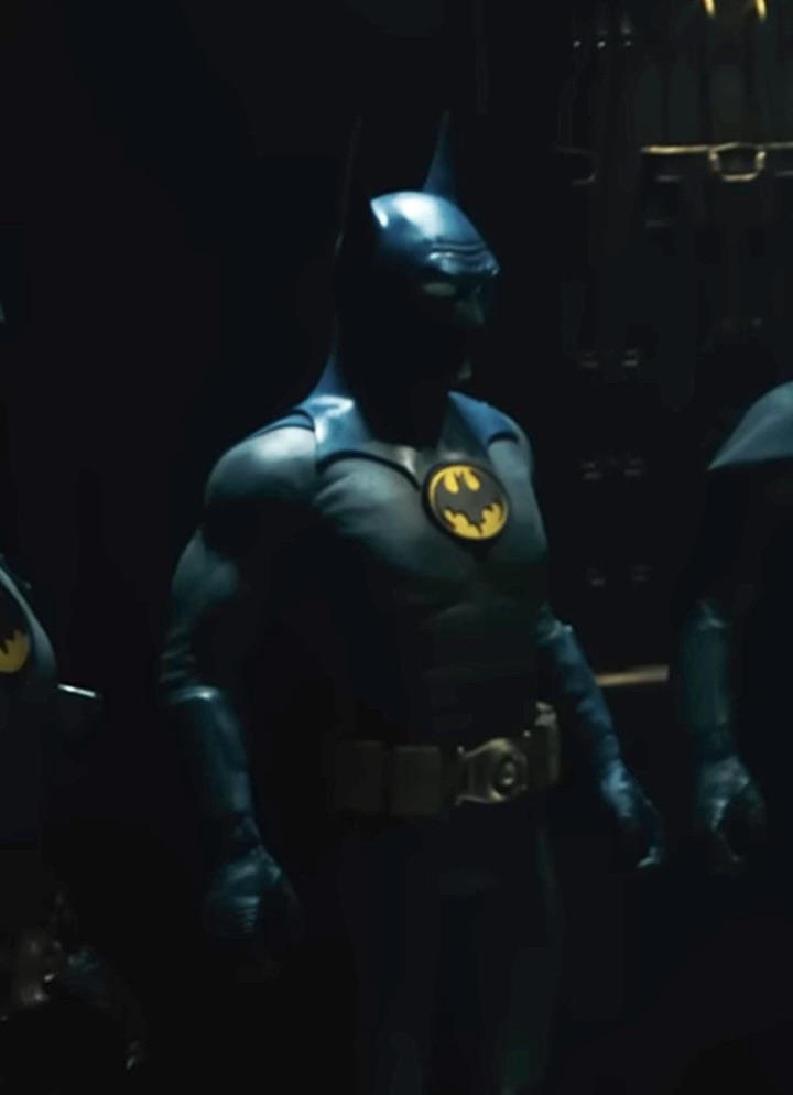 Blue and Gray Michael Keaton Batman cosplay (from the Flash)