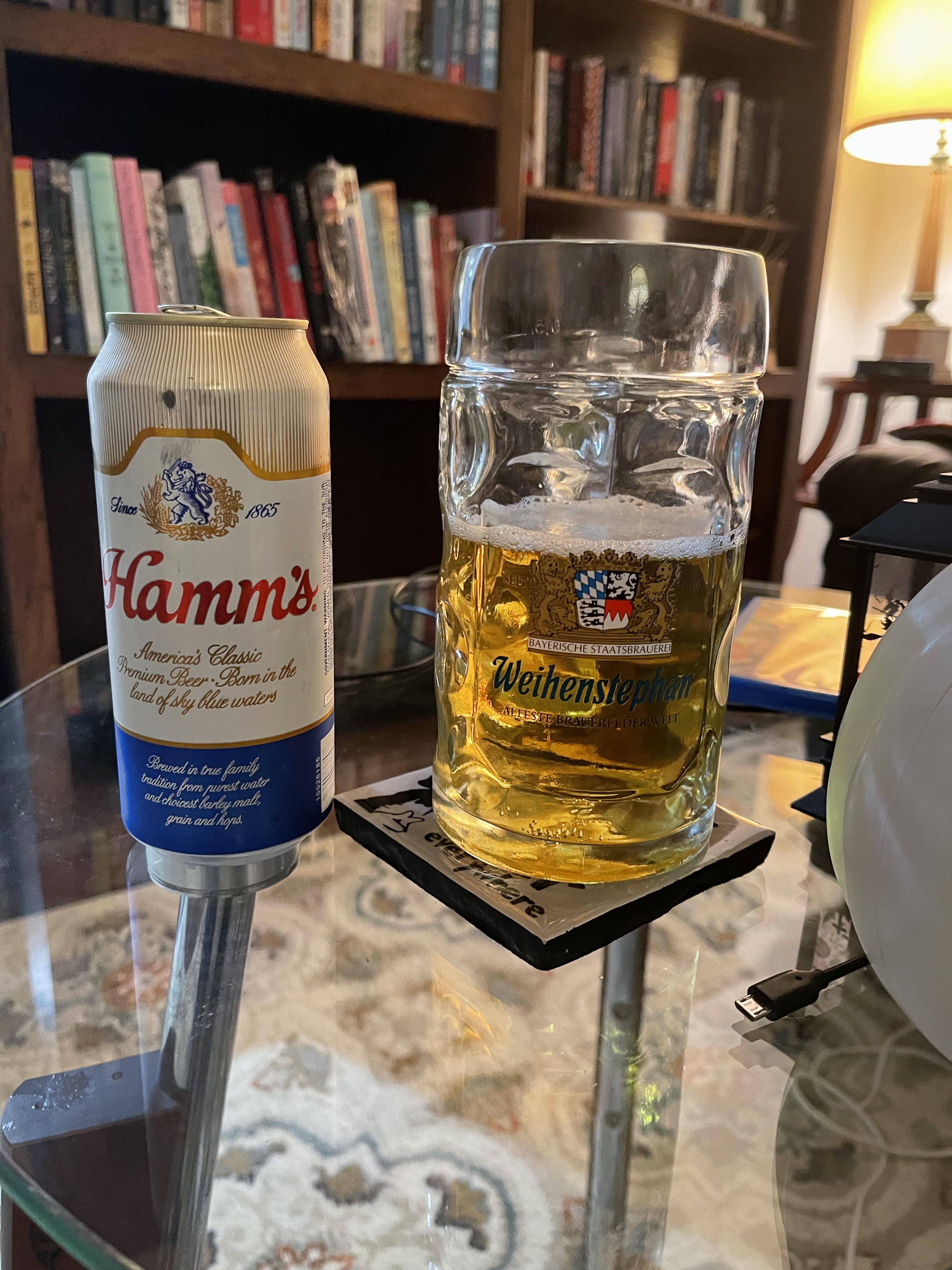 Breaking in the new beer glass. It’s a half liter glass. From this company I like their Hefeweizen.
