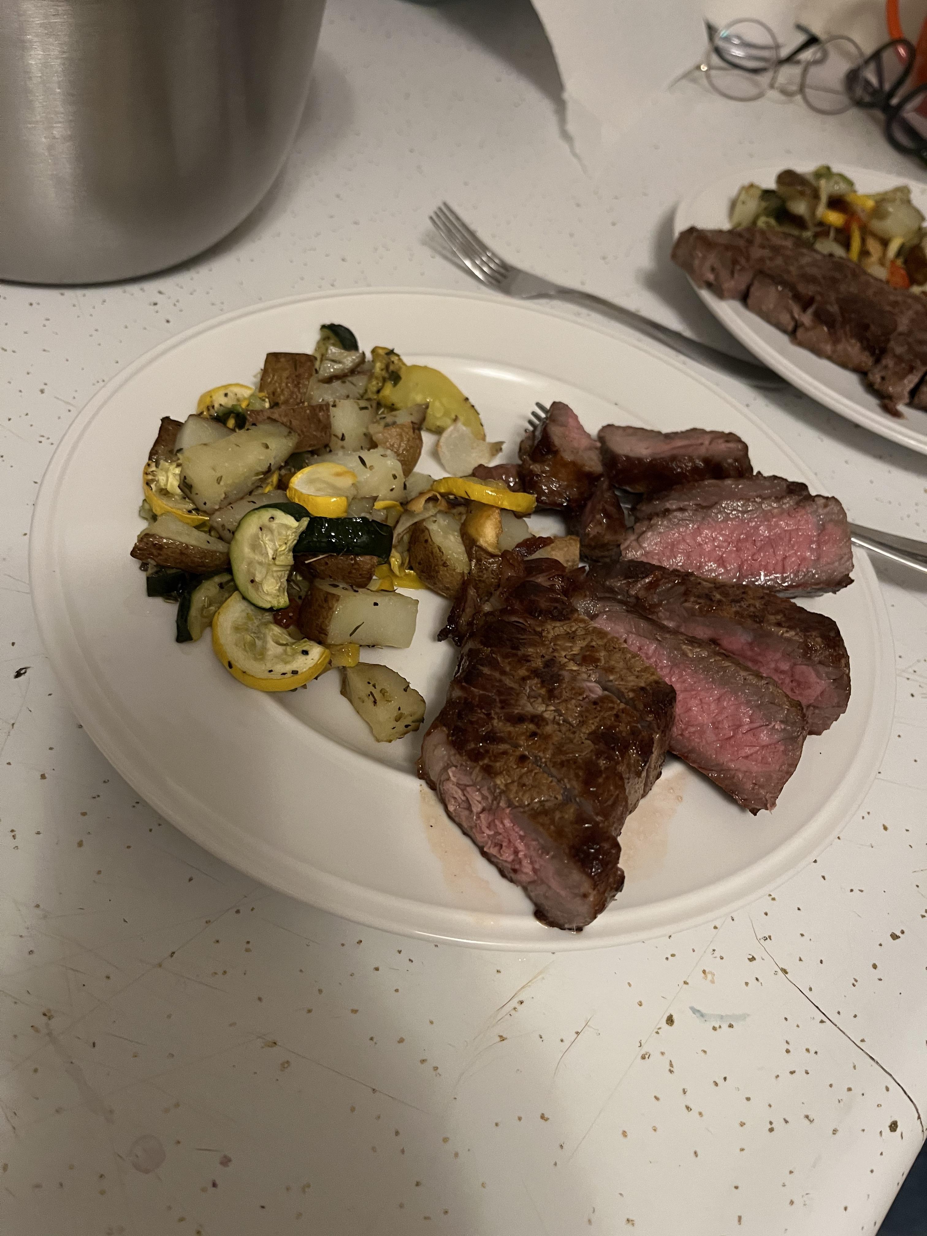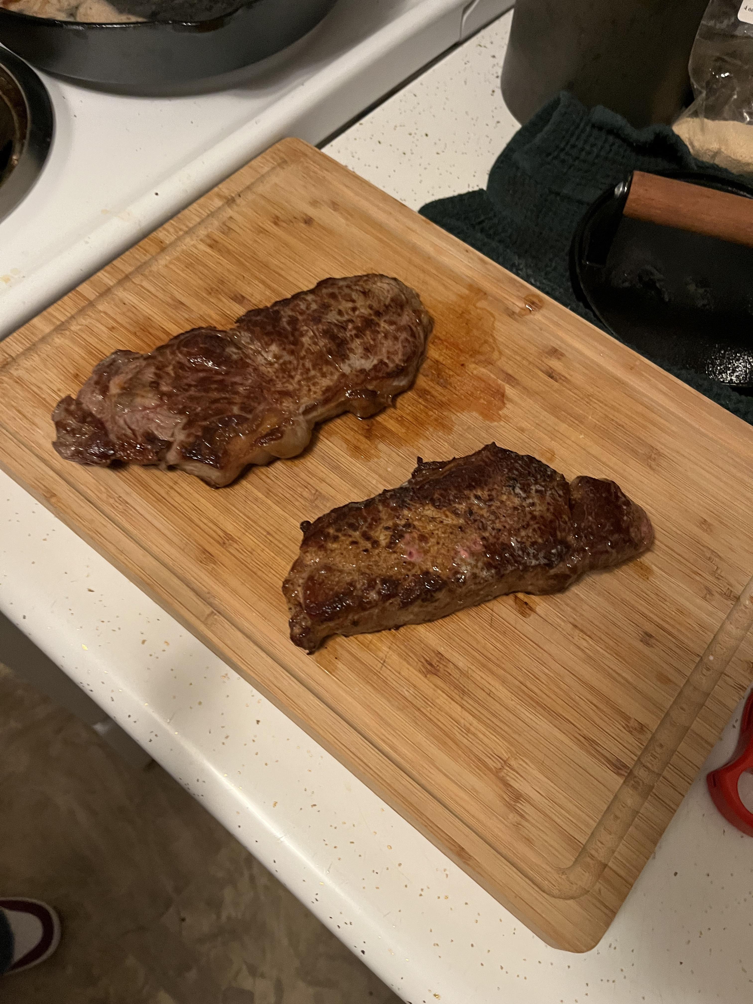Choice KC strip cooked in a cast iron for dinner tonight. First time posting, how’d I do?