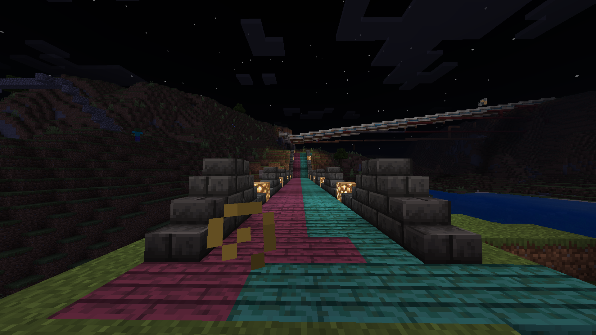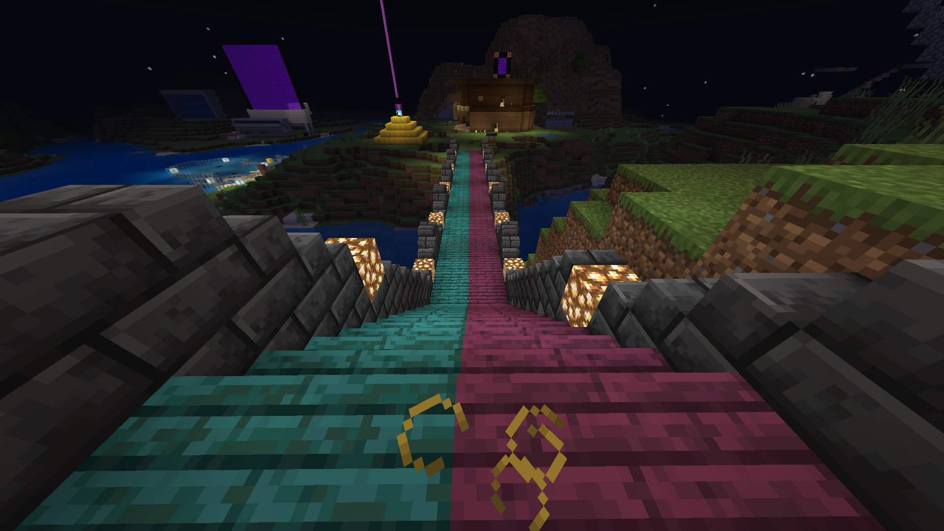 Crimson & Warped Bridge i made in my survival world, one of my first builds!
