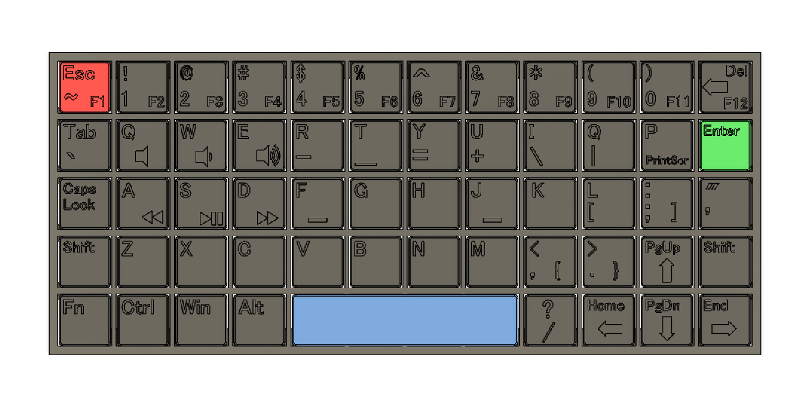 Custom Keyboard Layout Check? Upgrade for handheld PC, Gateron red low profile switches, resin print and maybe needle paint the symbols white with acrylic or grey panel line accent color. What do you think?