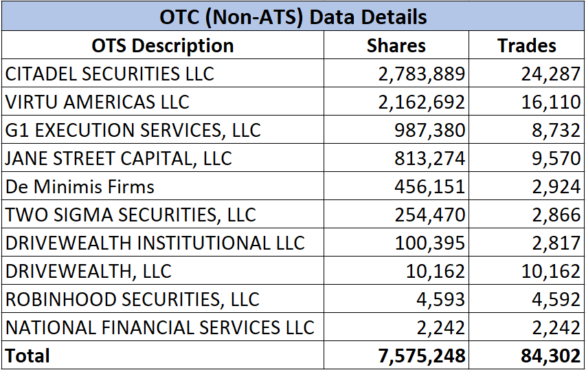 Dark Pool (ATS) and Over the Counter (OTC) data for $GME from week of 11/07/2022