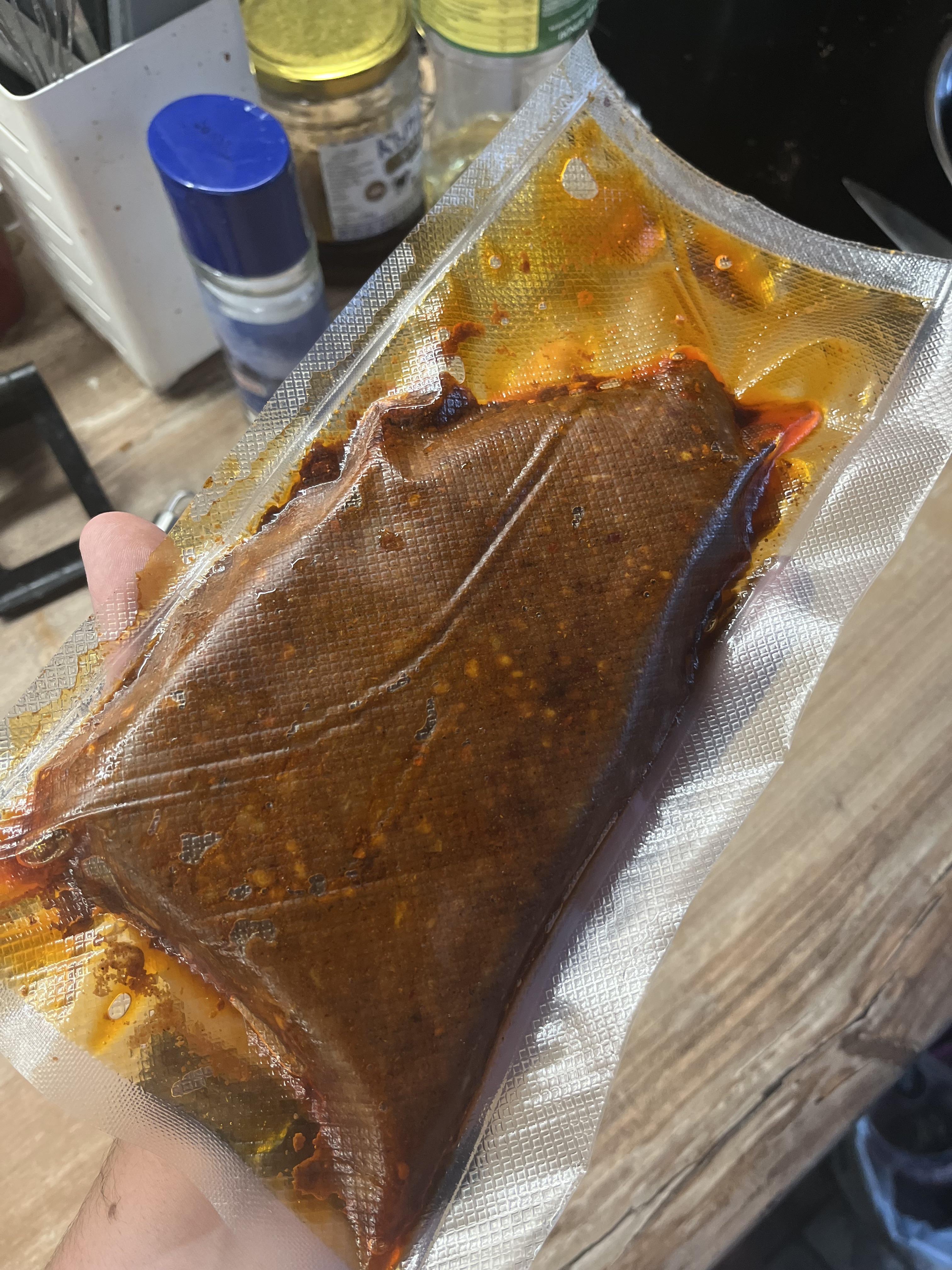 Decided to try marinating a steak with homemade marinade lol