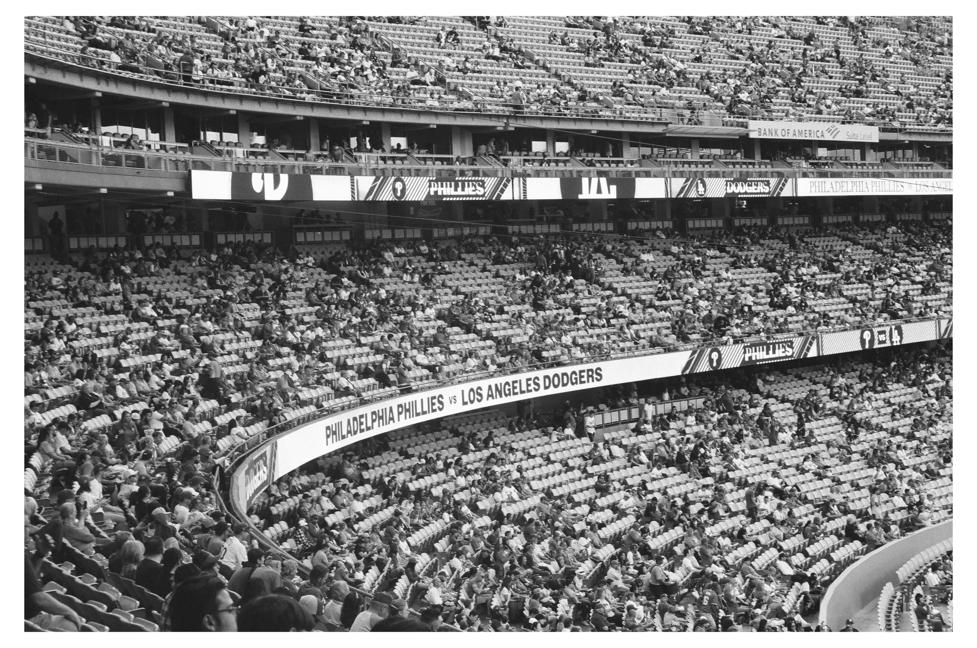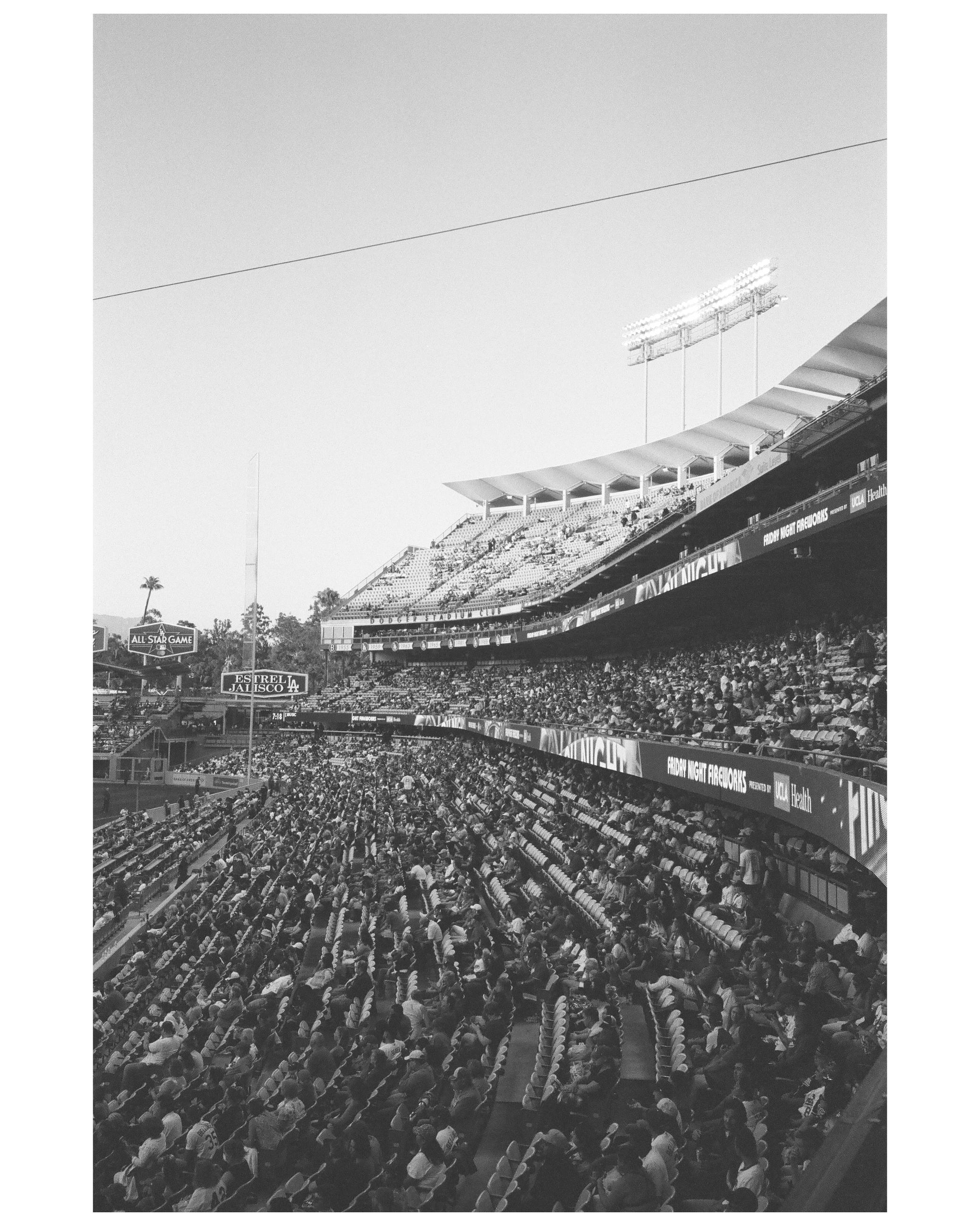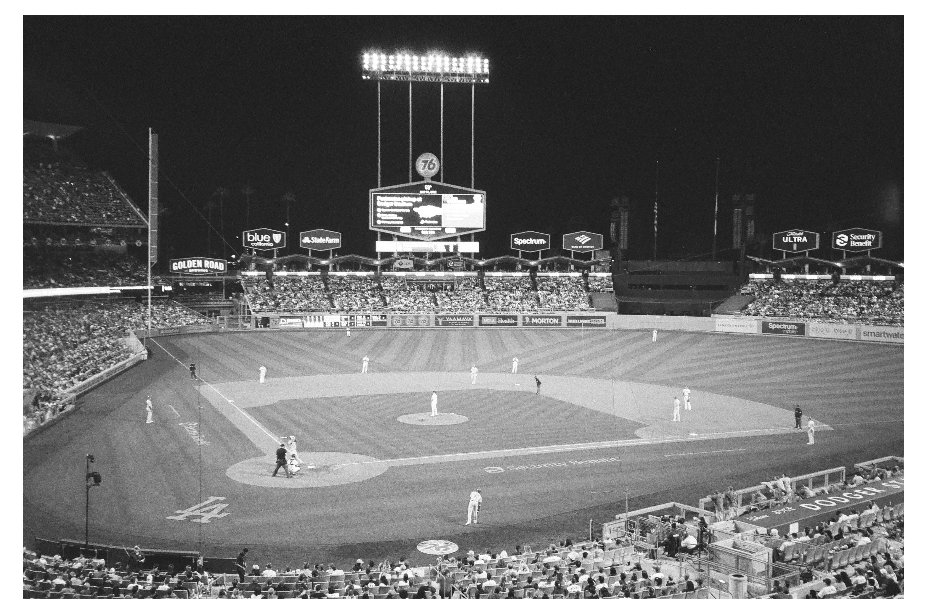 Dodger Stadium in Black and White 35mm film (Delta 400) on 5/13/22 against the Phillies