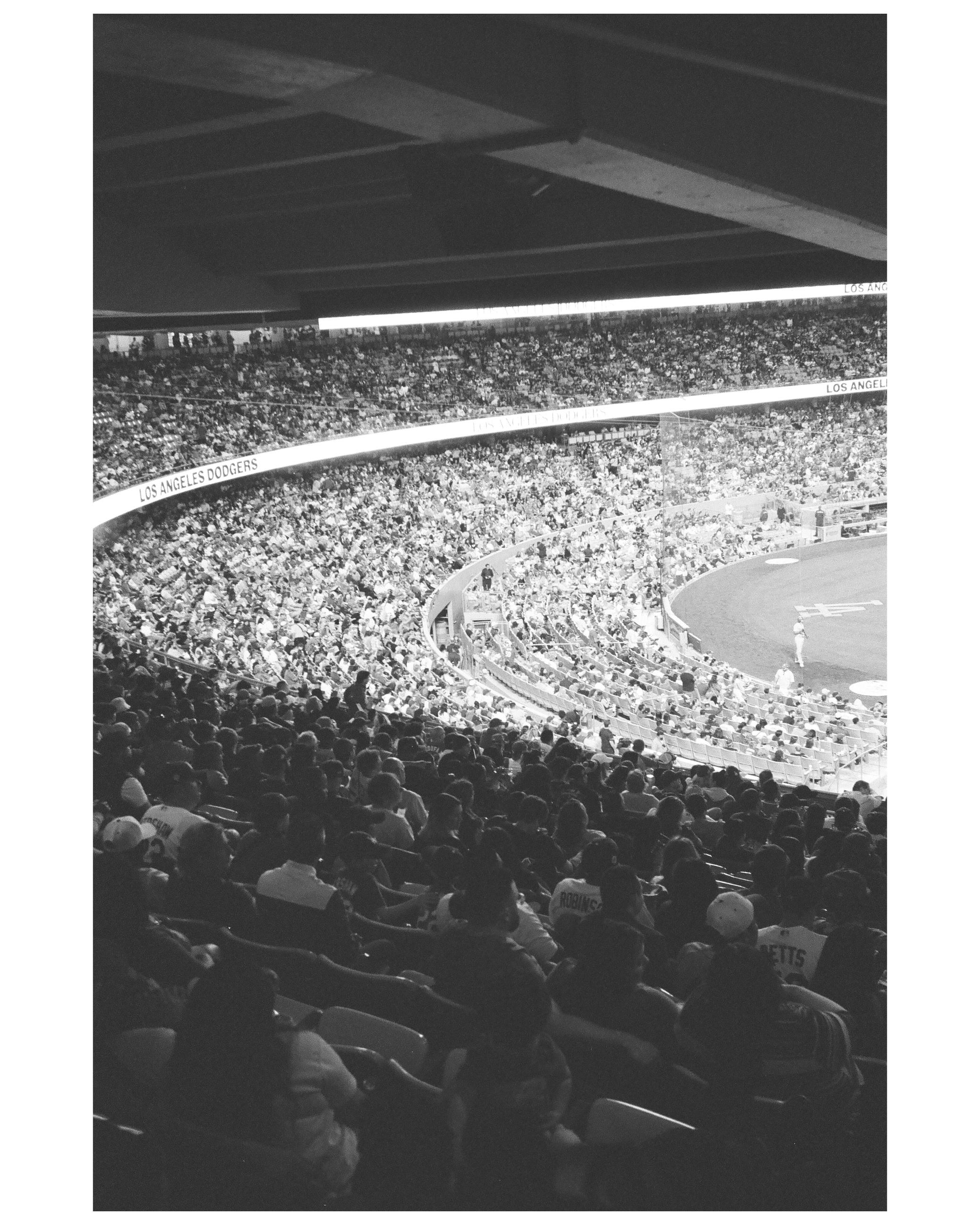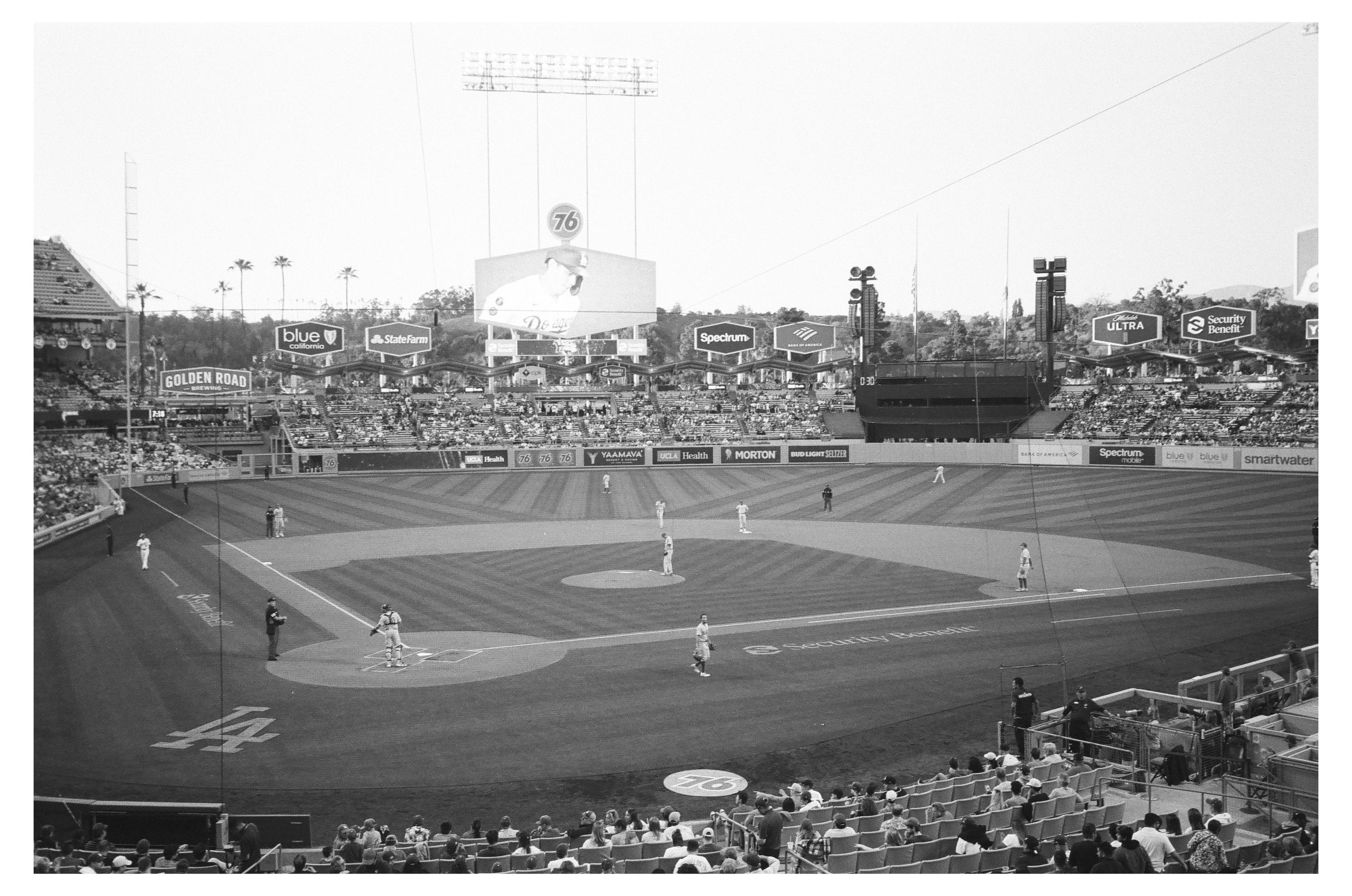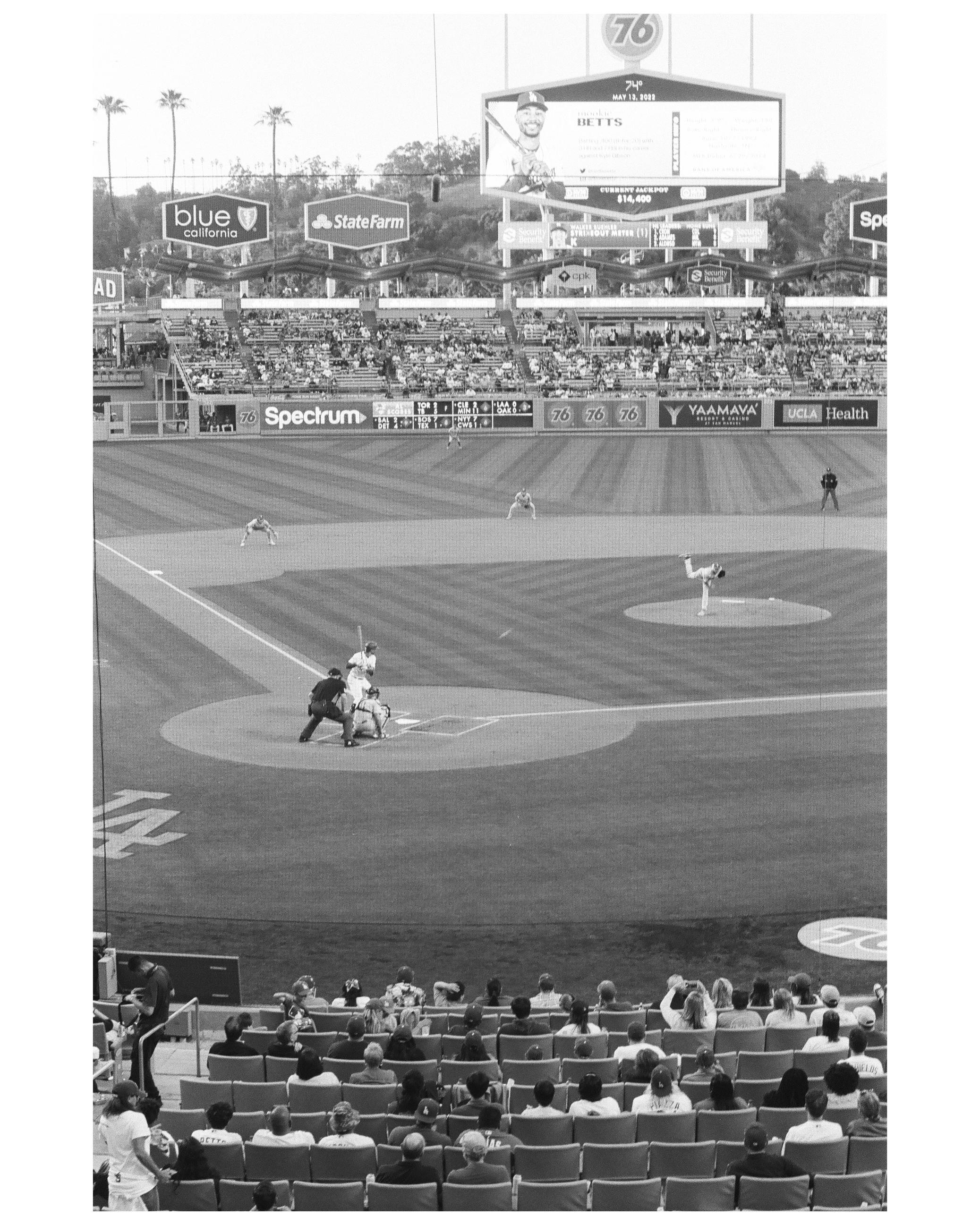 Dodger Stadium in Black and White 35mm film (Delta 400) on 5/13/22 against the Phillies