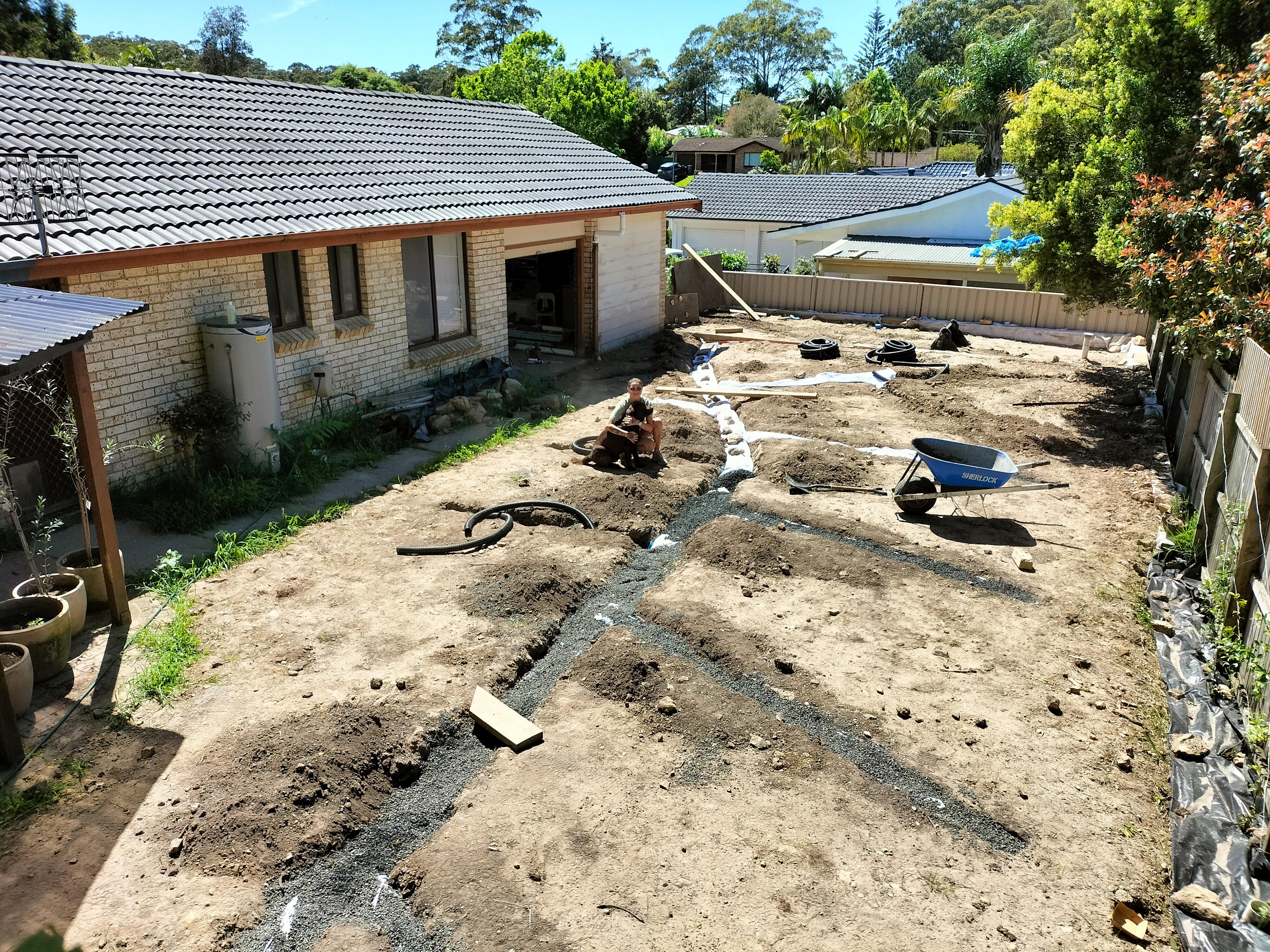 finished my french drain and started leveling off my backyard. Turf comes next.
