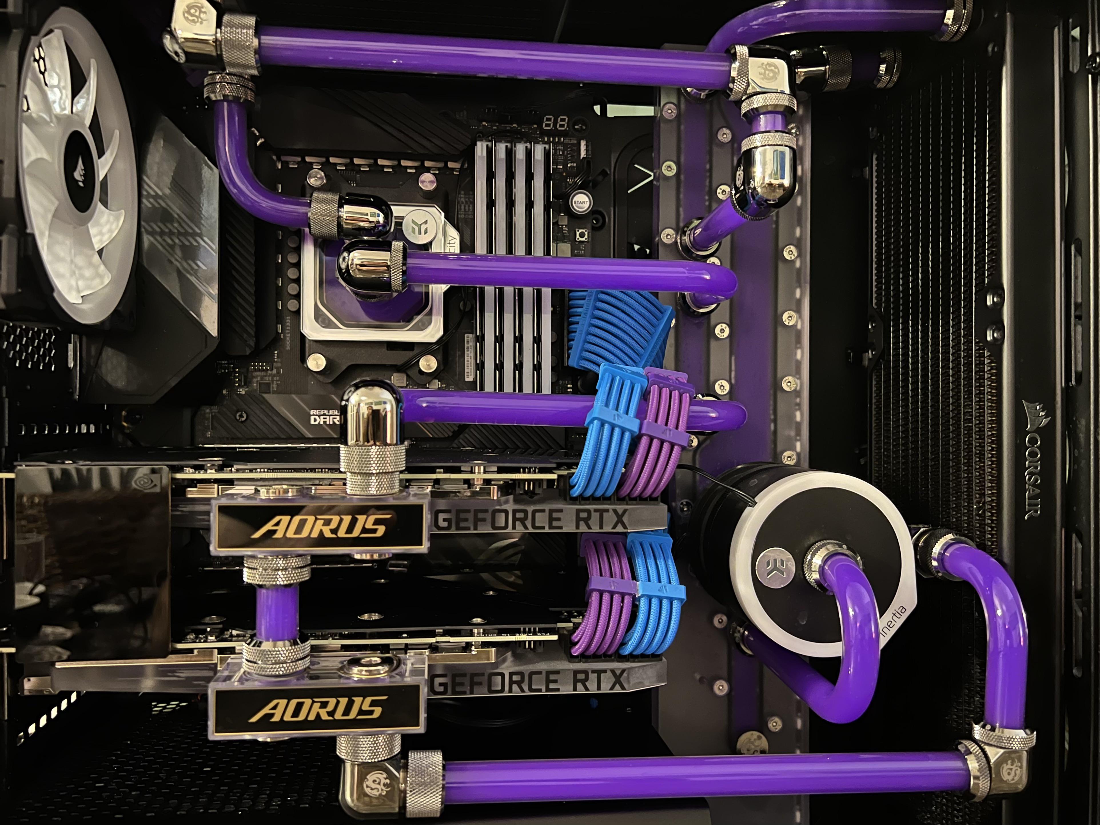 Finished this build for an Adult Swim animator. 2x 3090s, 128gb RAM, 20TB, 5950X. Thanks for the pump help!