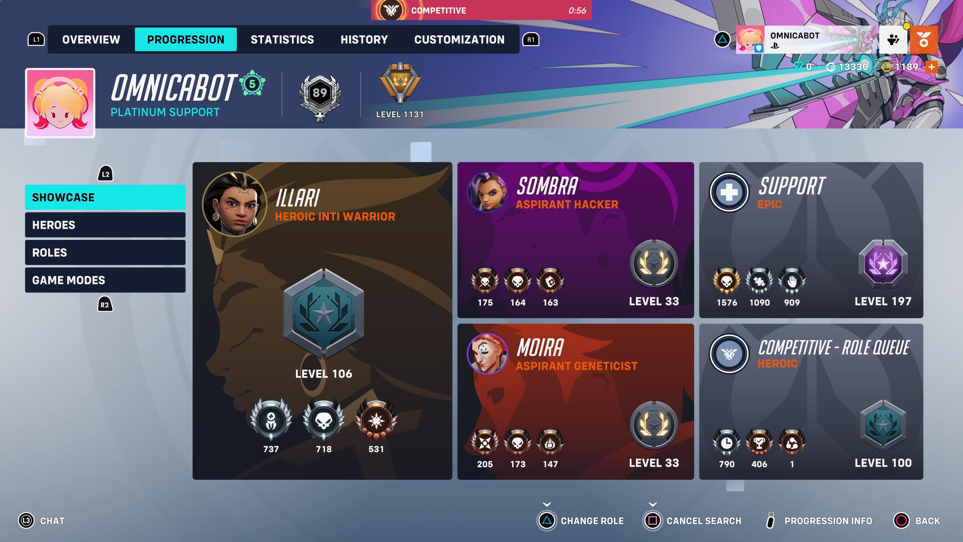 Hero progression: What is highest level in game mode and high level hero? Mine is in Competitive role queue at 100 (barely beating qp) and illari at 106