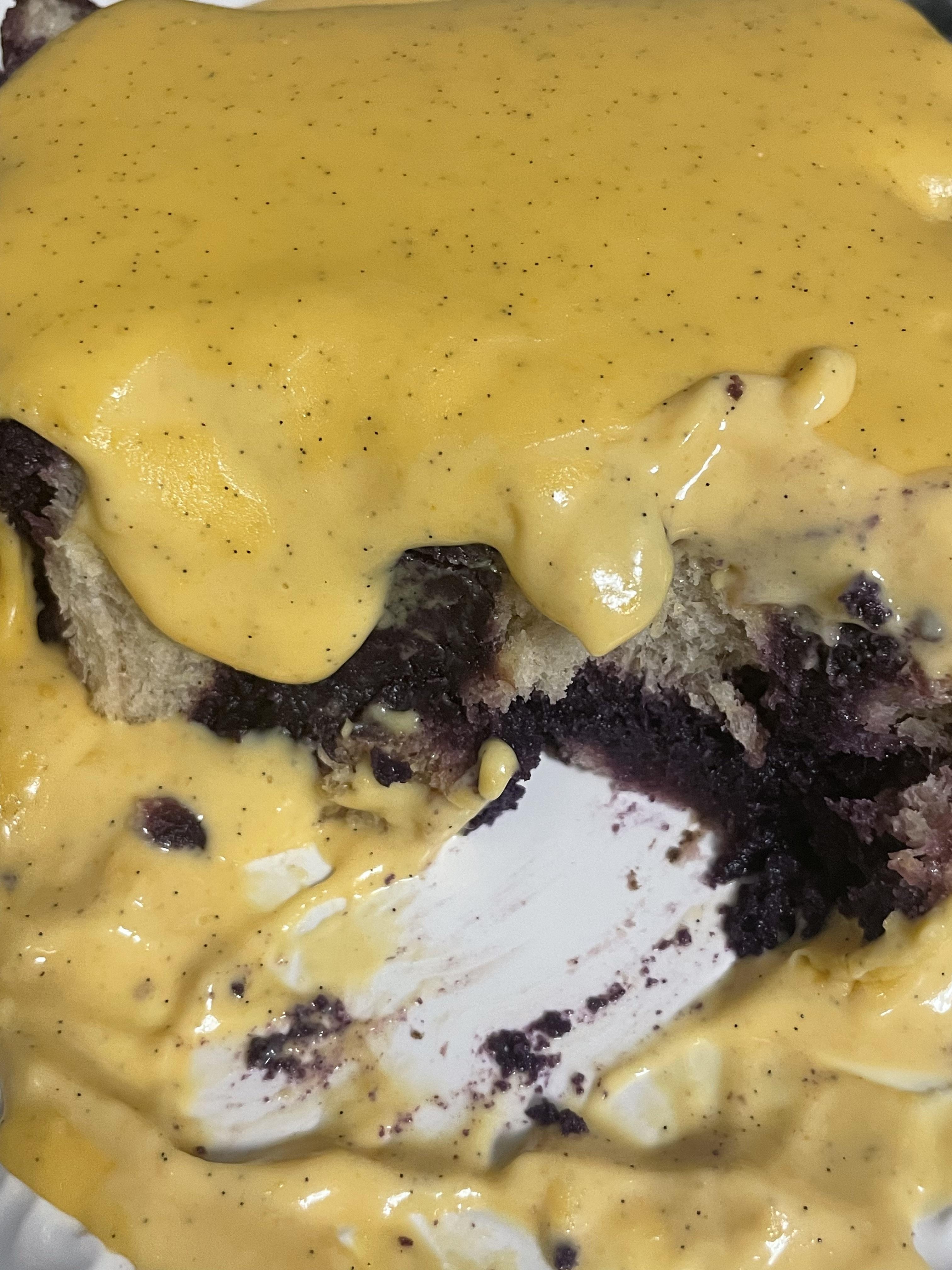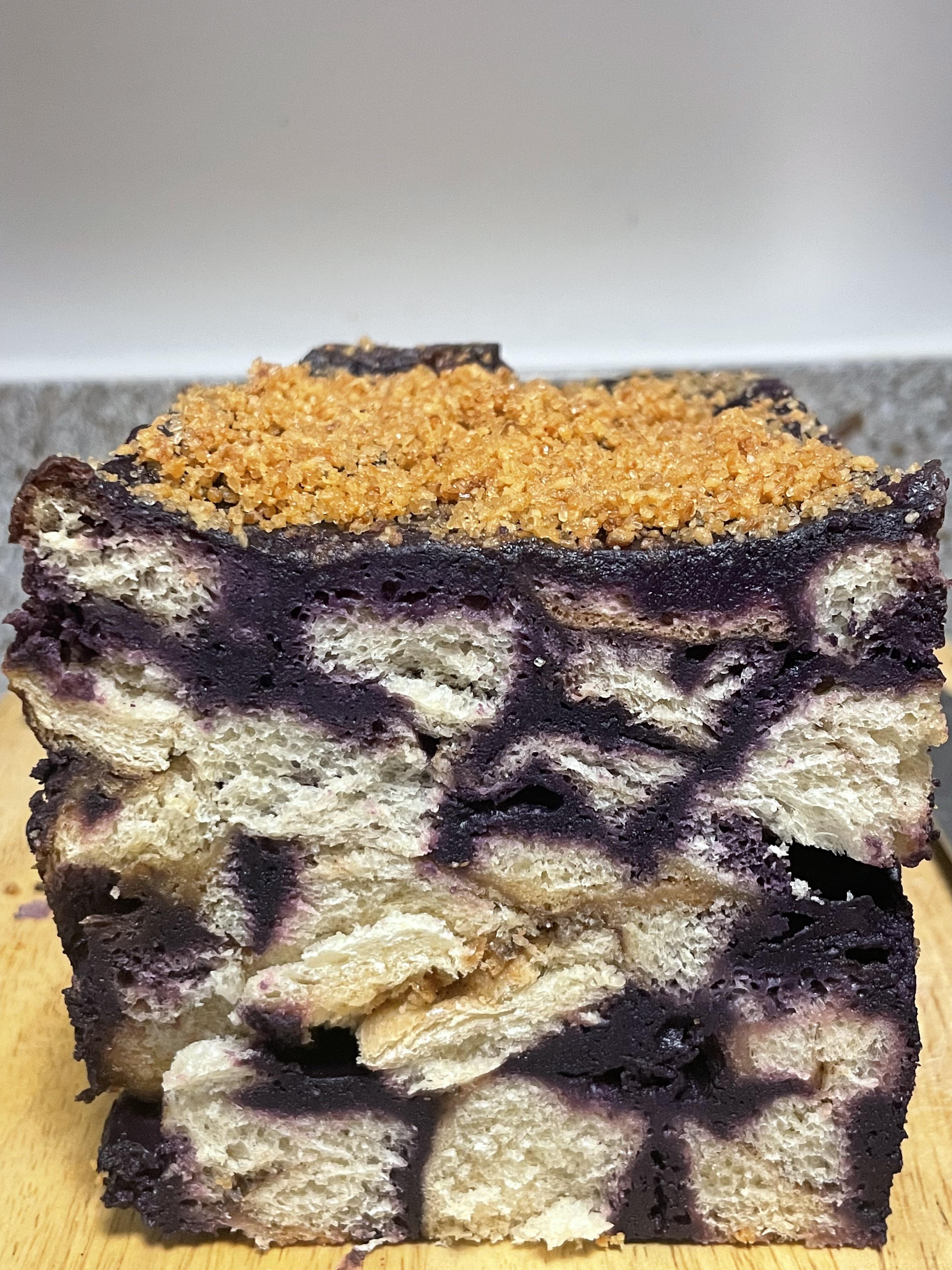 [homemade] Ube Cinnamon Swirl Bread pudding with Salted Duck Yolk Custard