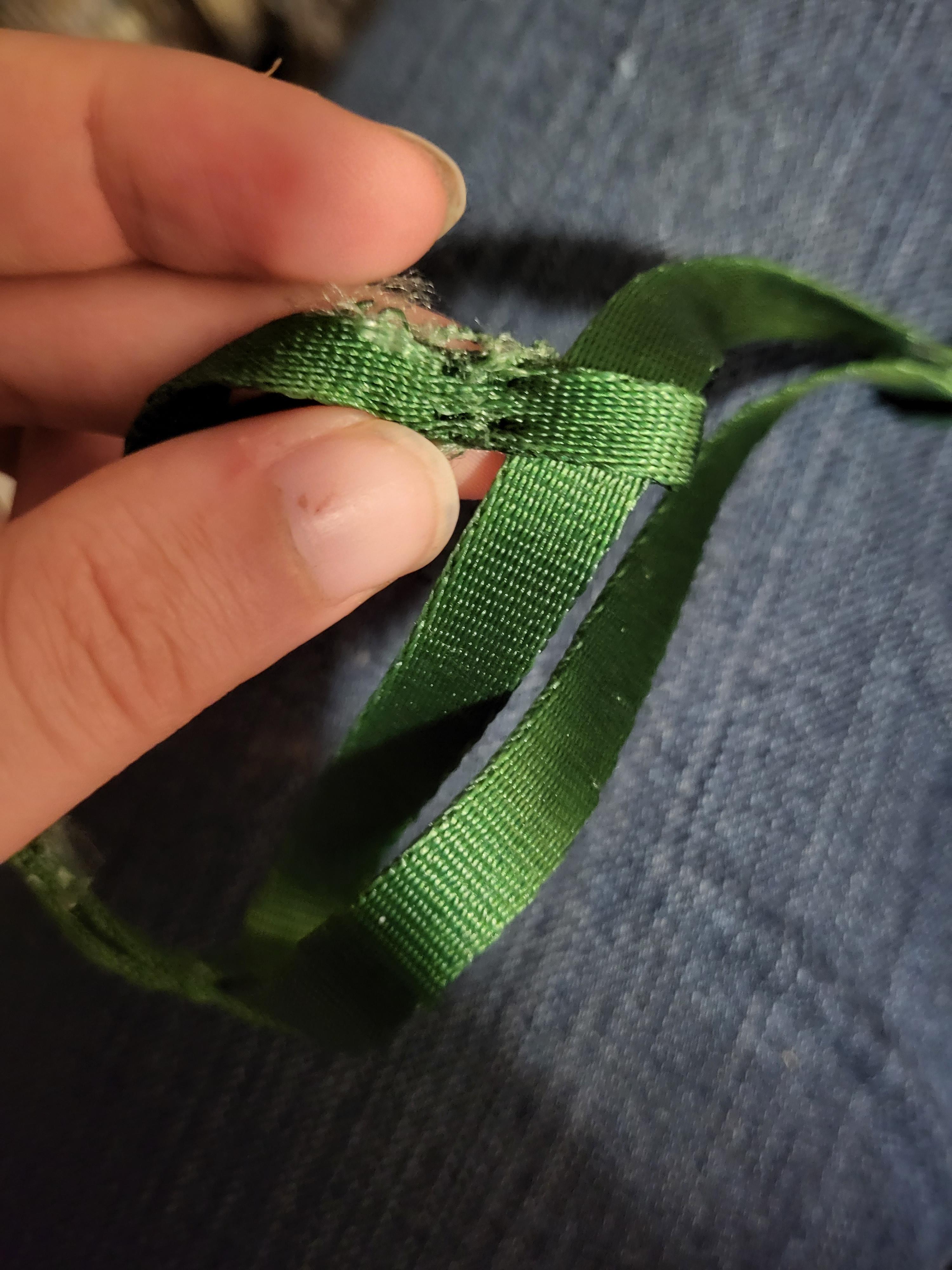 how fix this harness. Still sturdy just frayed cause bird got ahold of it.