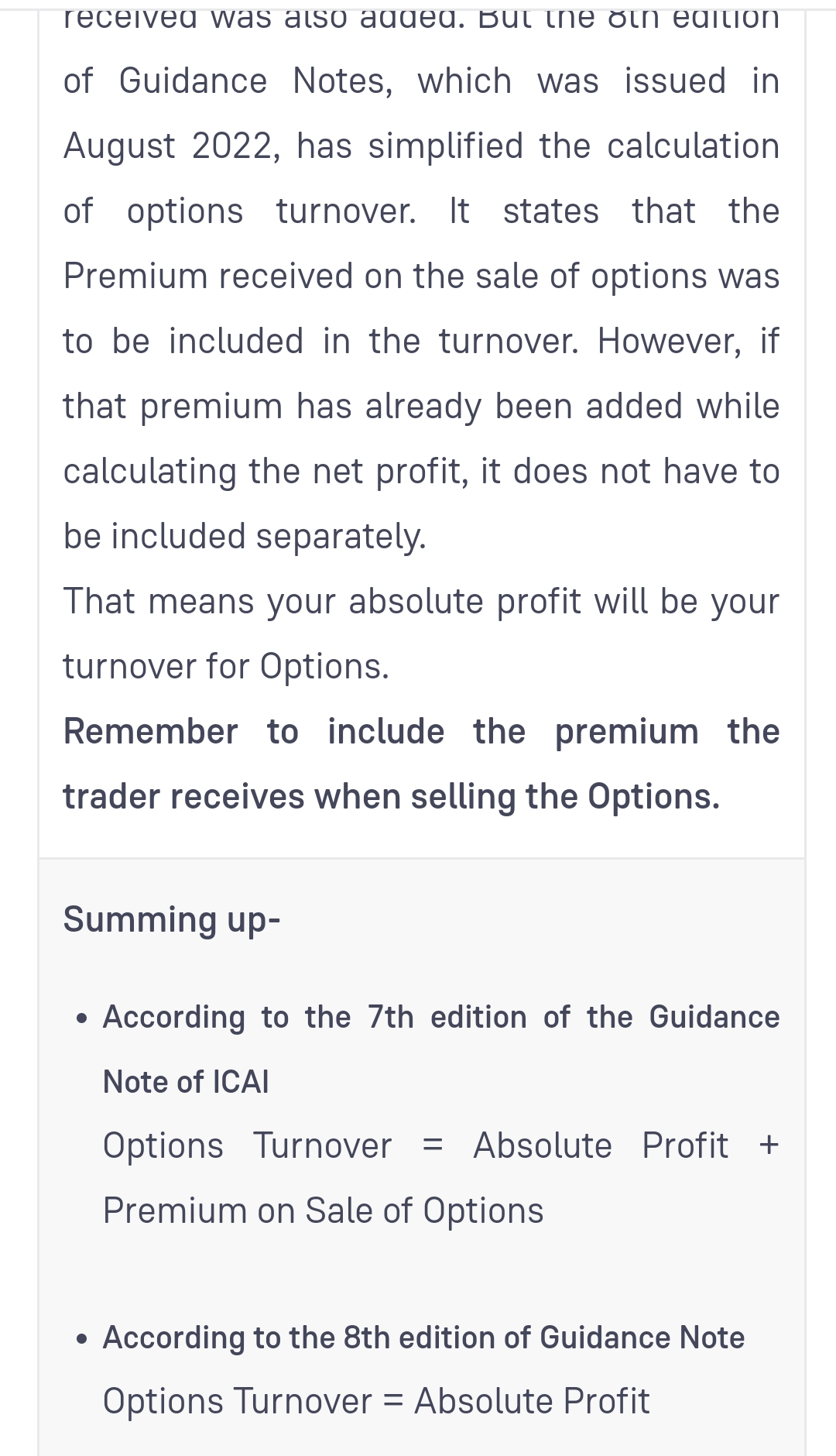 How to calculate turnover for option trading and what % is to be considered as income from the same?