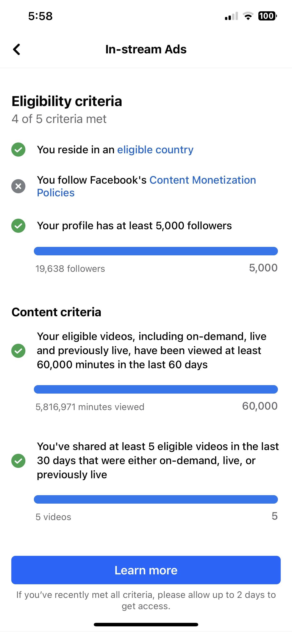 How to fix Content Monetization Policies? Why does it says I follow it in Subscription Set-up, but not with In-streams ads?