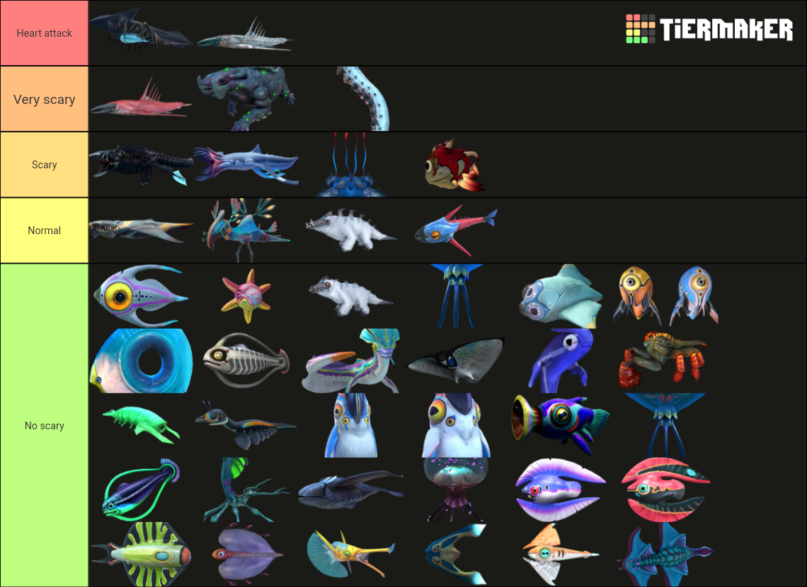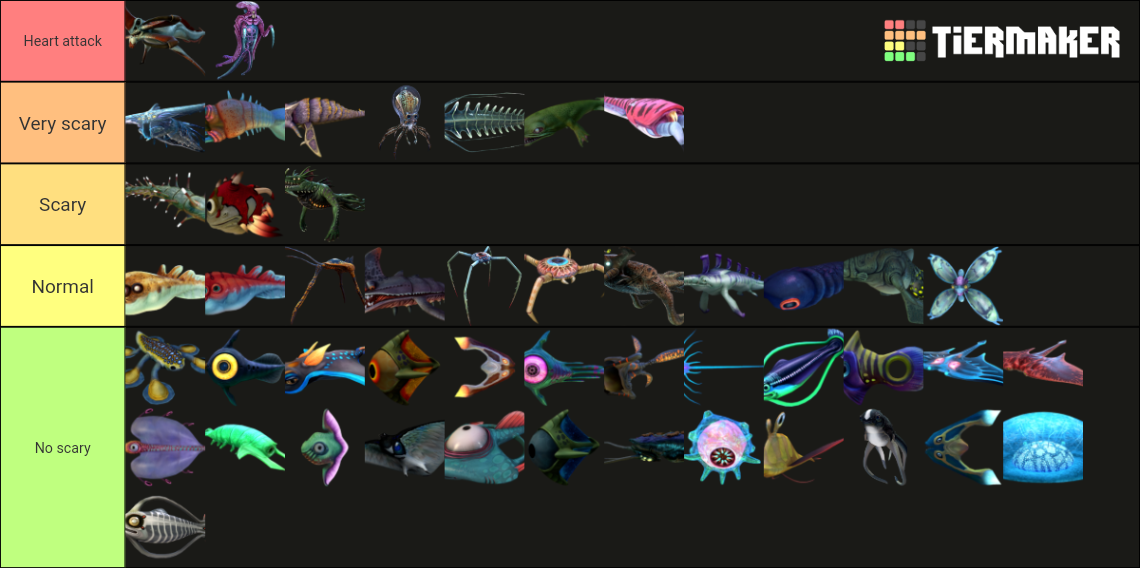 I have made a tier list of the creatures in the game according to how scary they are in my opinion (subnautica and below zero)