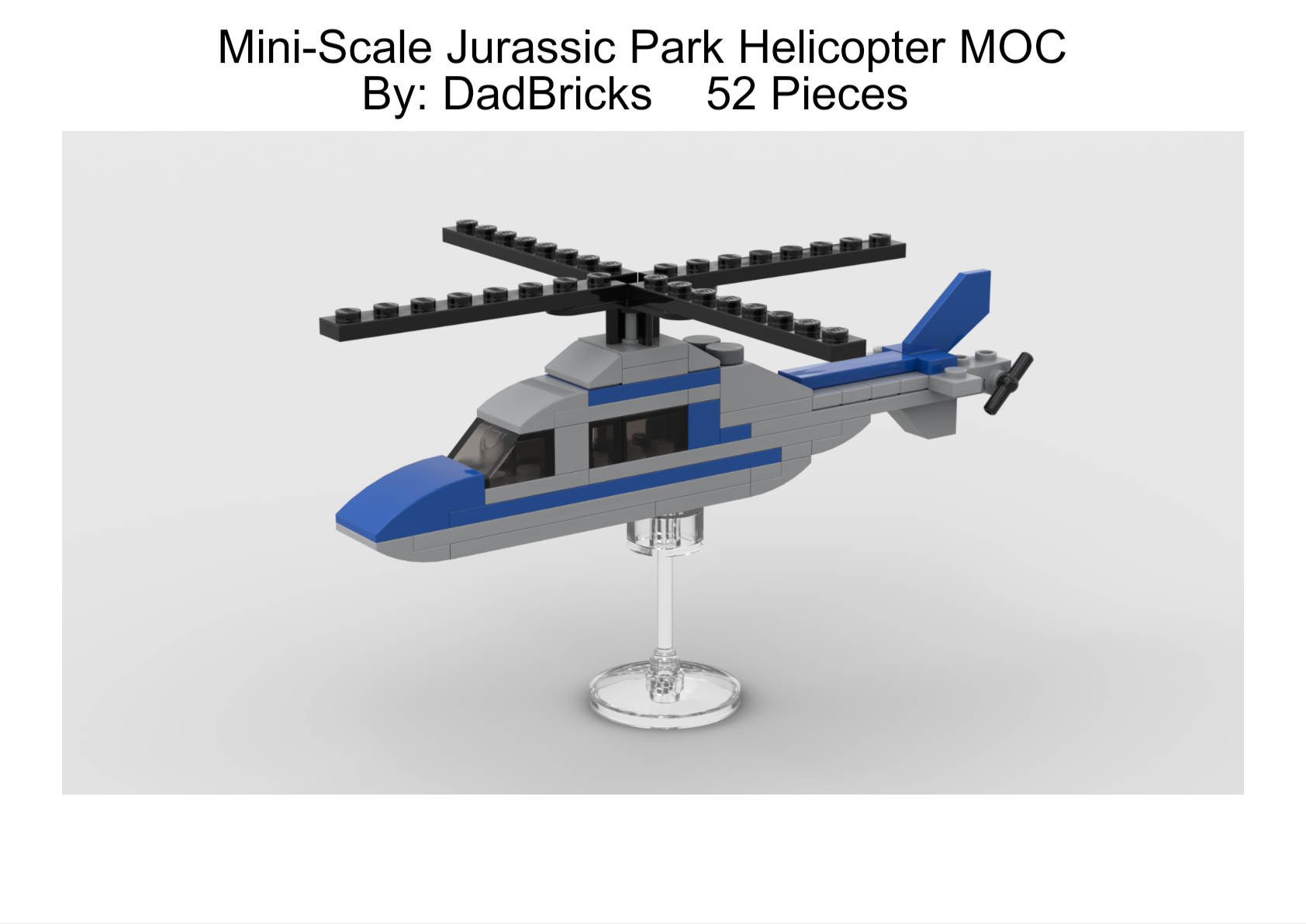 Lego mini-Jurassic Park Helicopter MOC- Free instructions- 52 Pieces including stand