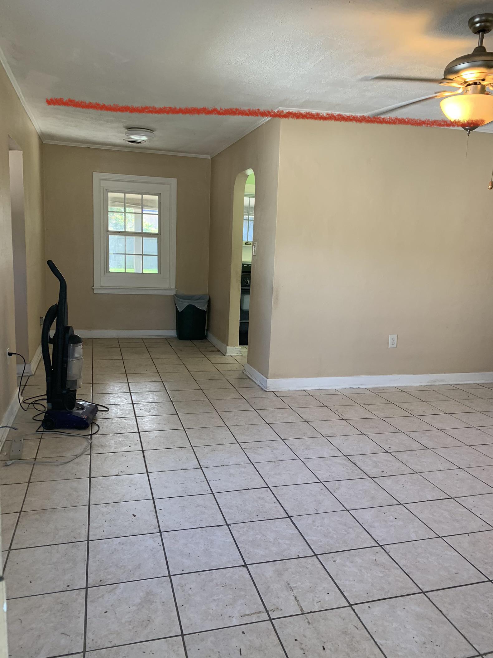 Load bearing wall?!? Single story house, concrete slab, total 940 sq ft. First picture is the attic above the wall we are trying to take out. There is a beam on top of the wall I believe two 2x10 sistered up spanning from the left side of the house to about 3/4 to the right of the house.