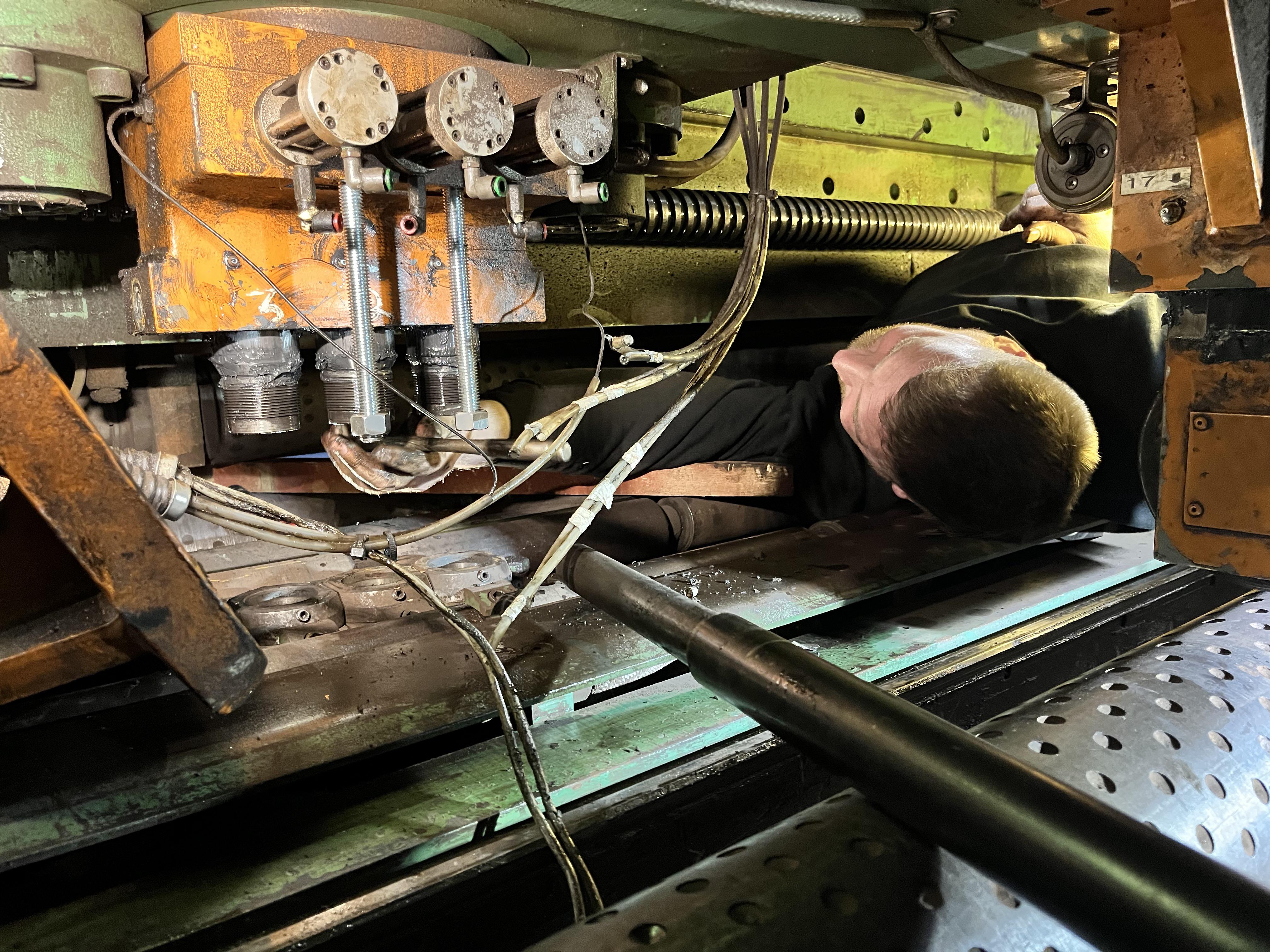 Machine mechanic came into our shop this week to fix our CNC plasma/punch steel plate machine. (More in comments)
