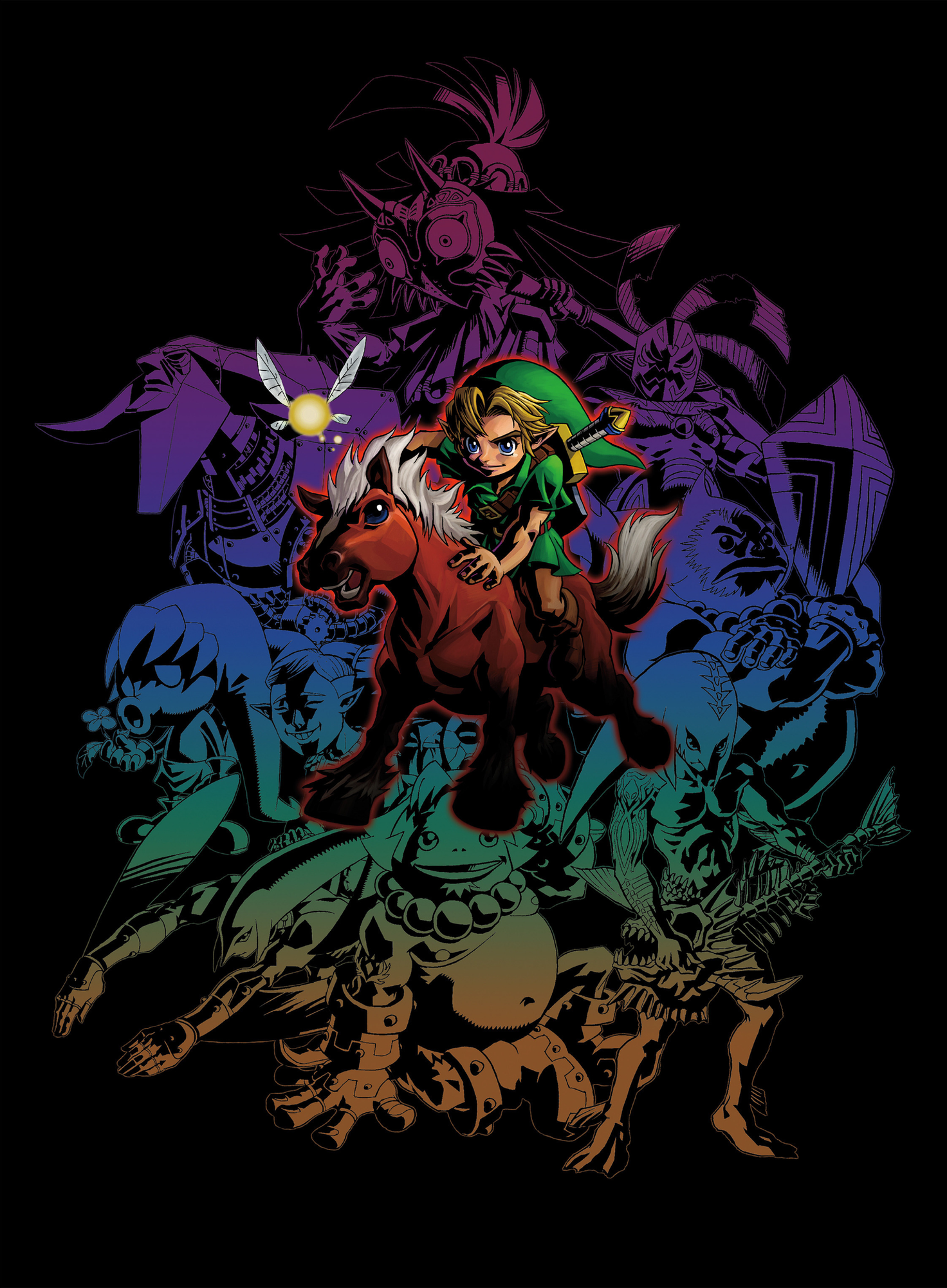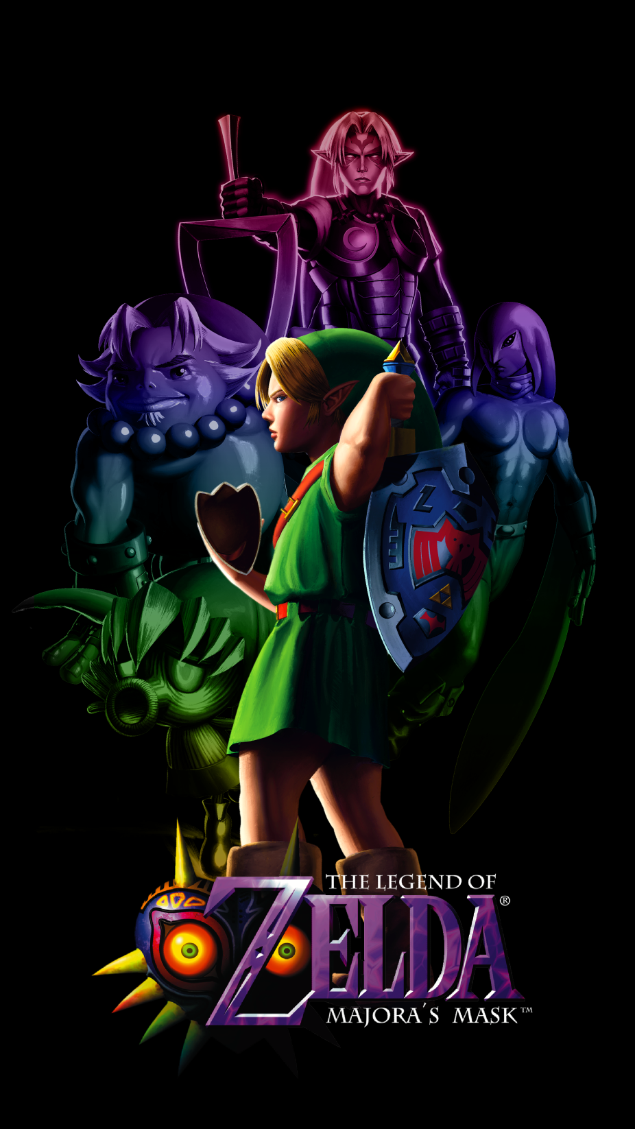 [MM] Majora's Mask poster featuring paintings of Link and all the mask transformations, in the style of Yusuke Nakano's promotional artwork [OC]