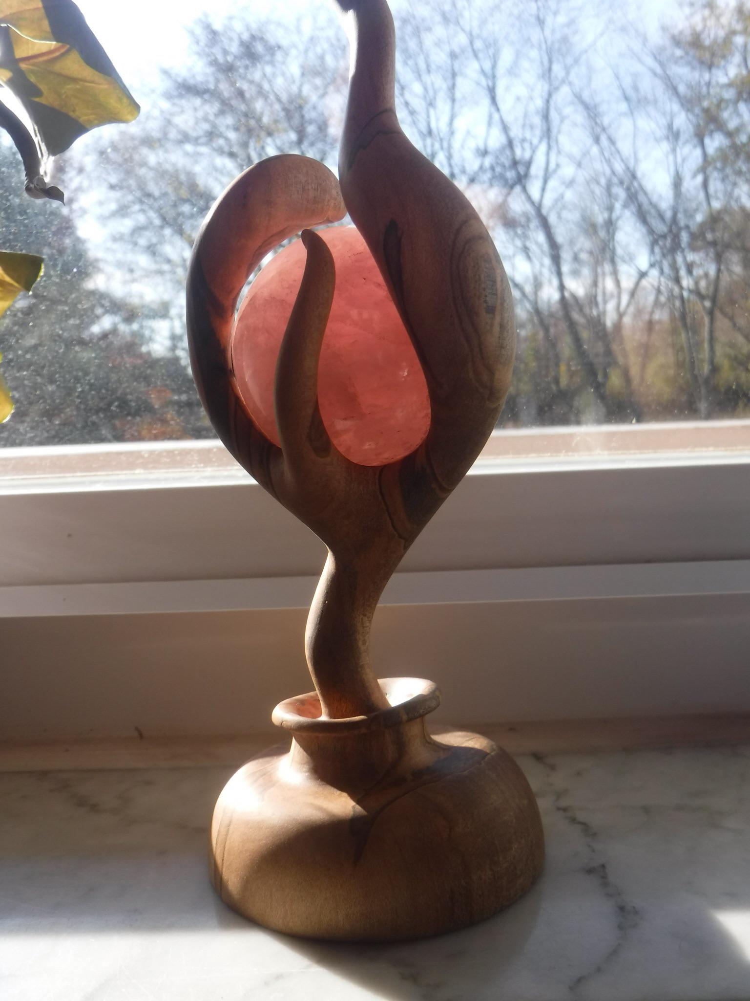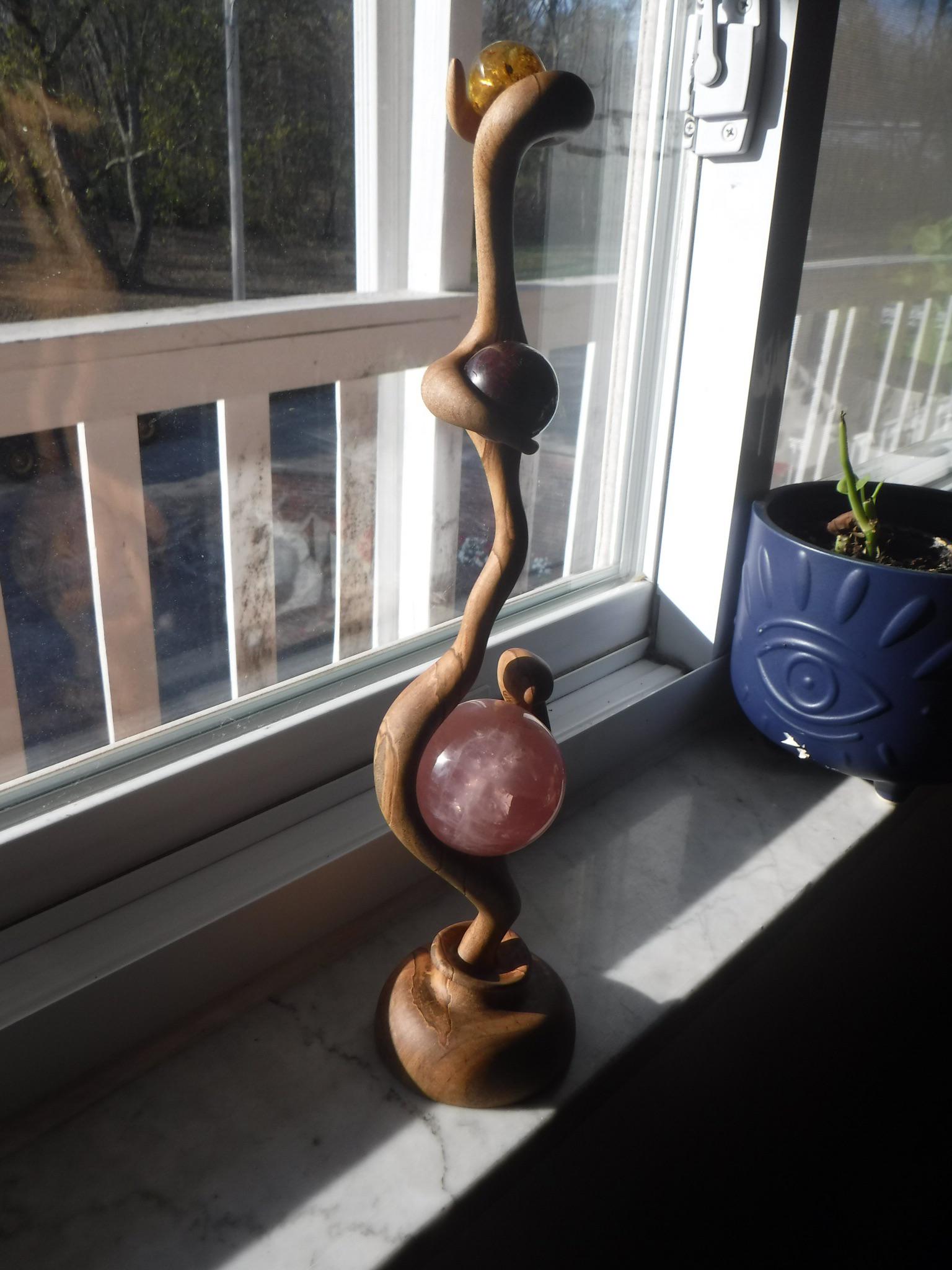 My newest work. Ambrosia maple with spheres of rose quartz, garnet, and amber[Self]