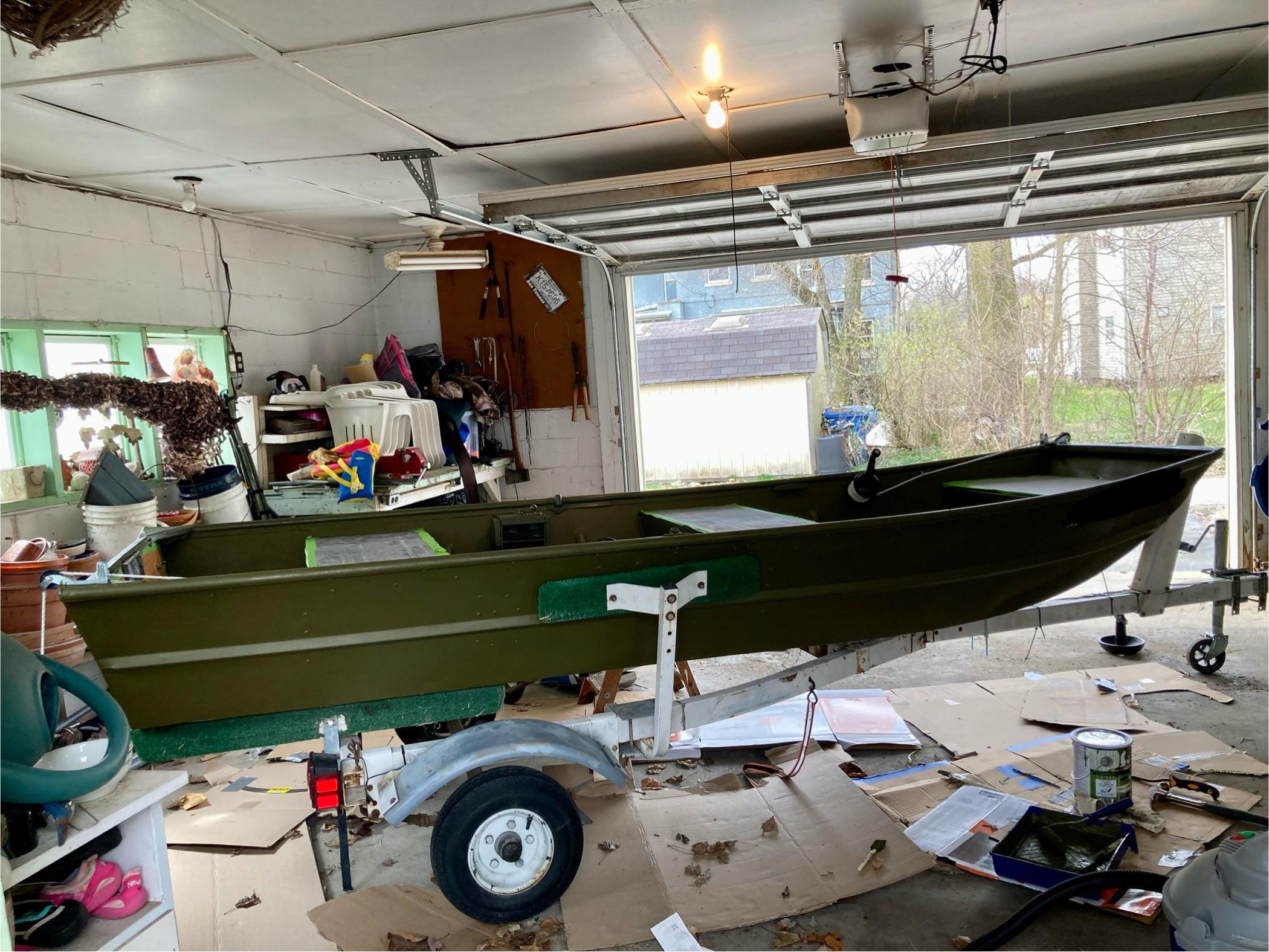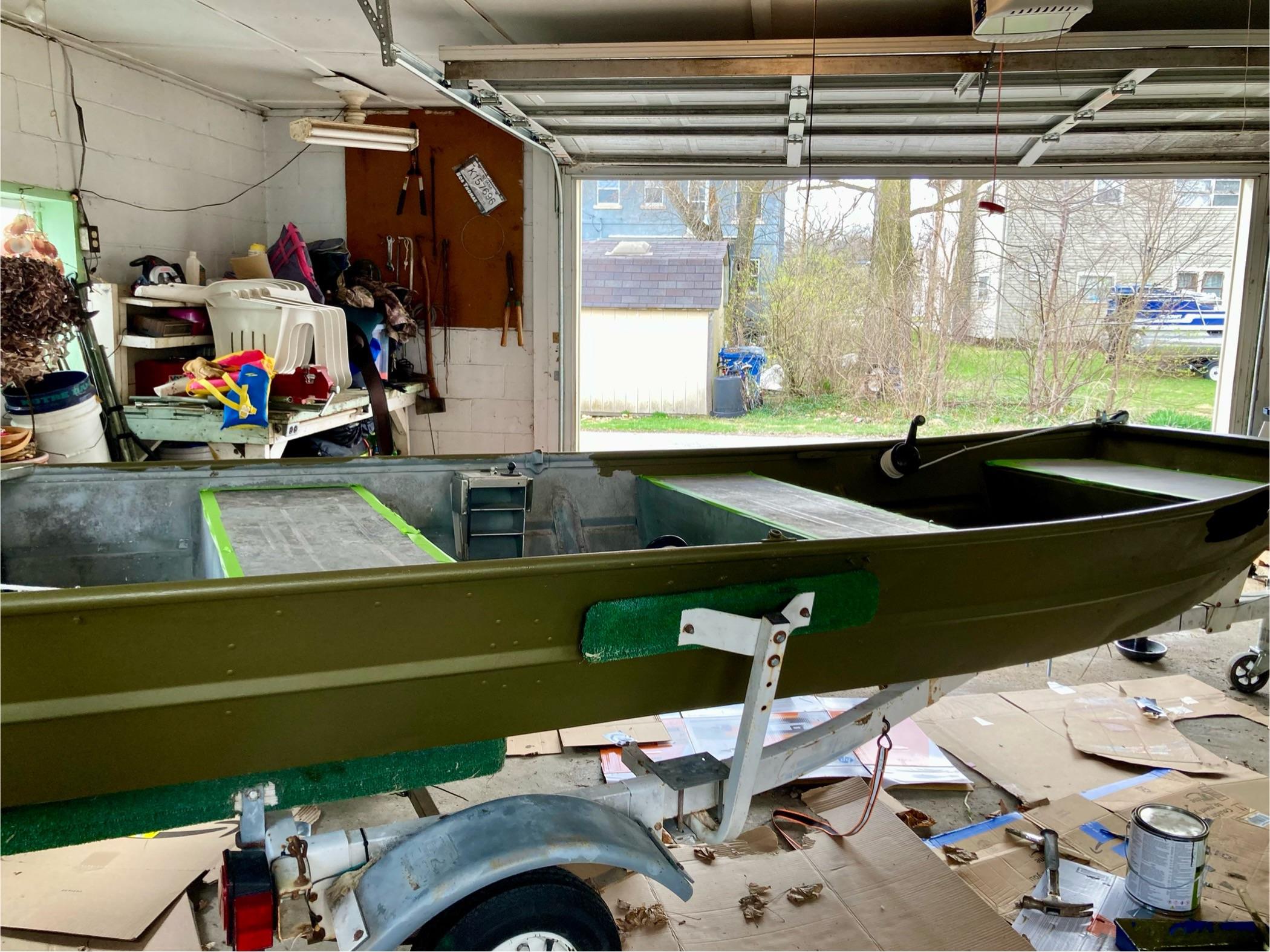 Old Jon boat gets new paint job from “silver” to green