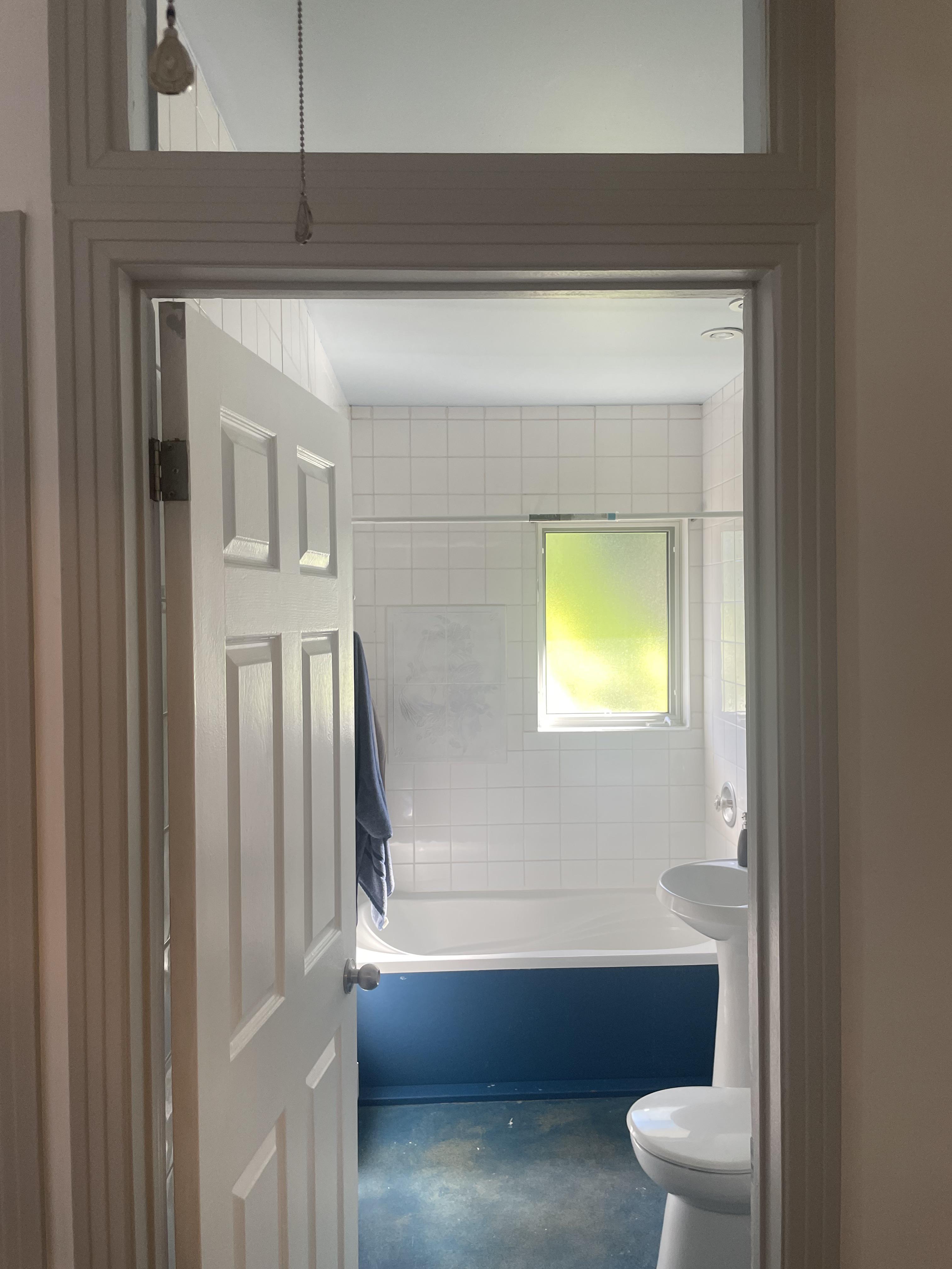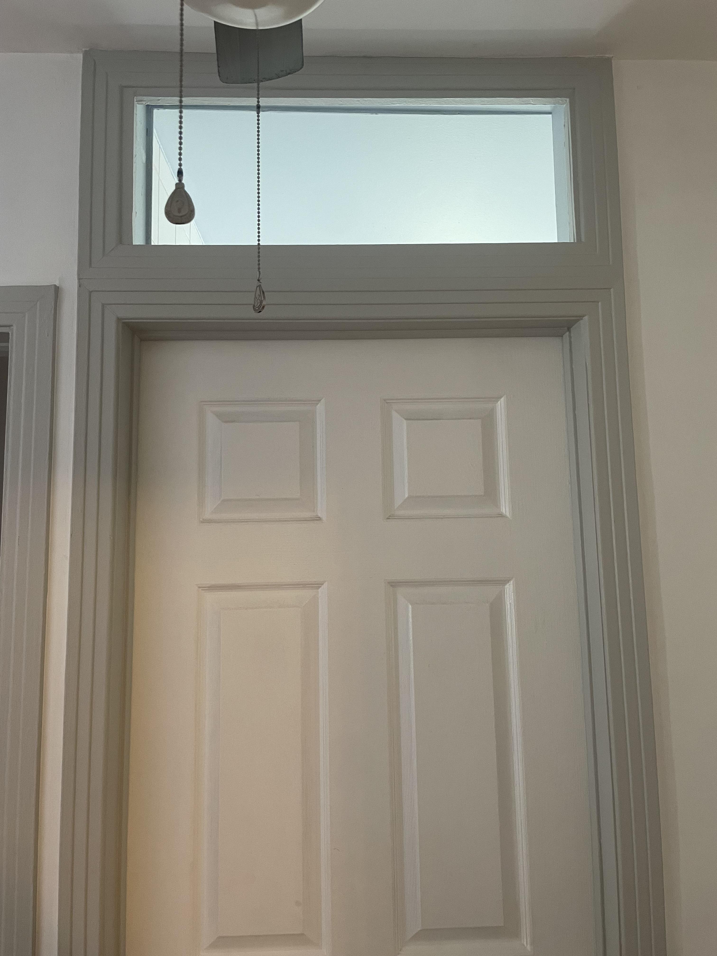 Options to fill transom window space above bathroom door?