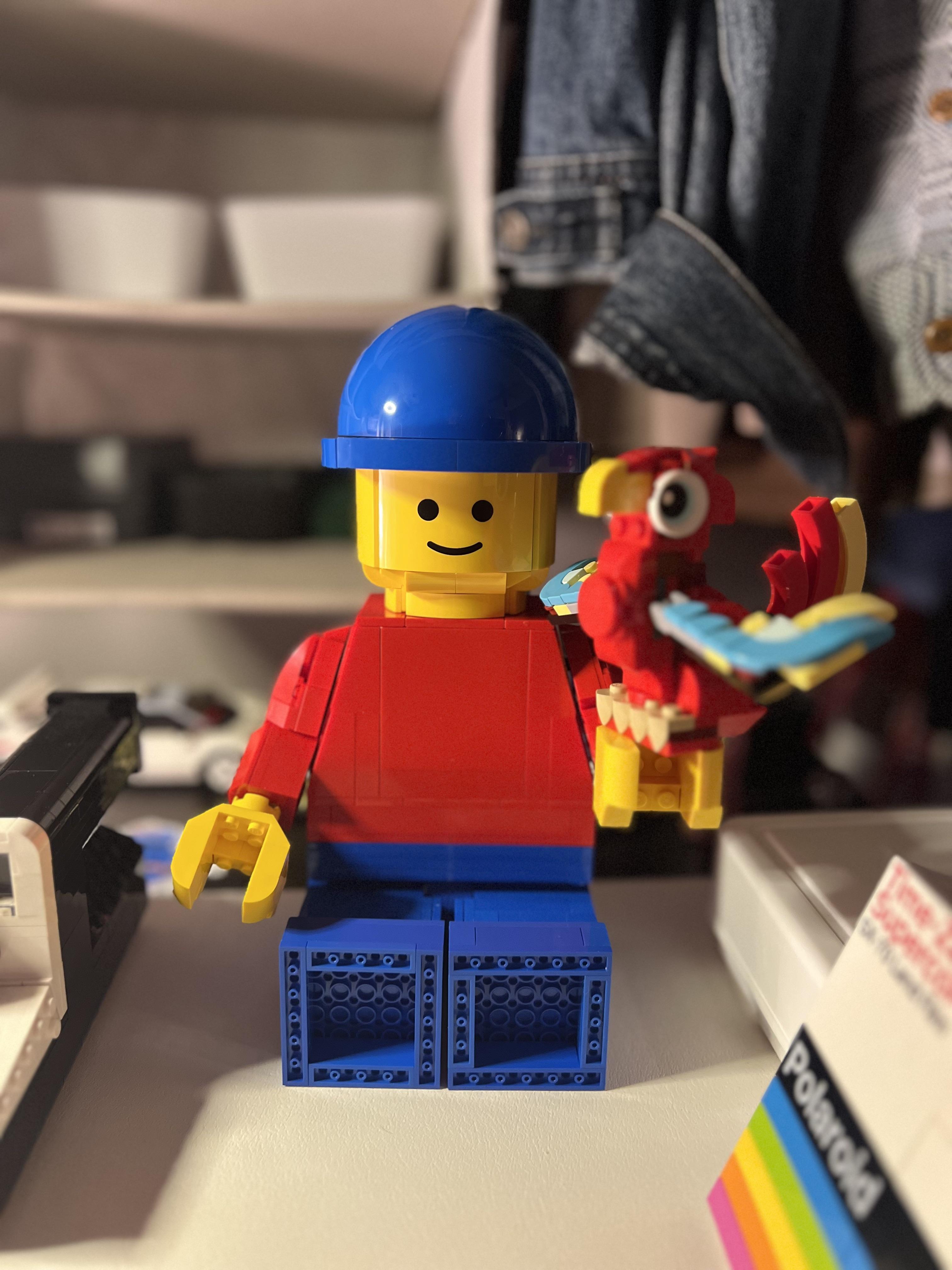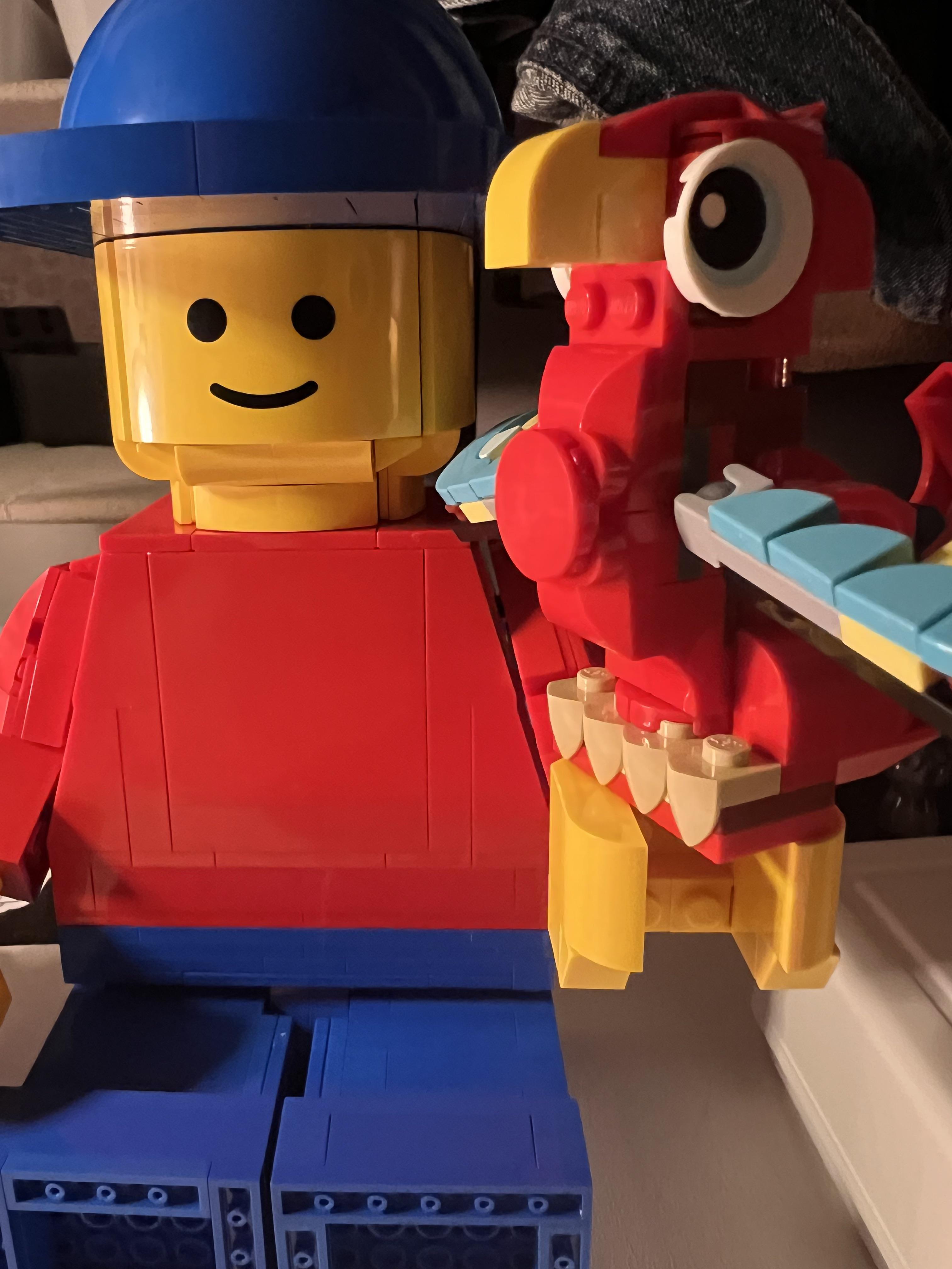 Parrot and Up-Scaled LEGO Minifigure