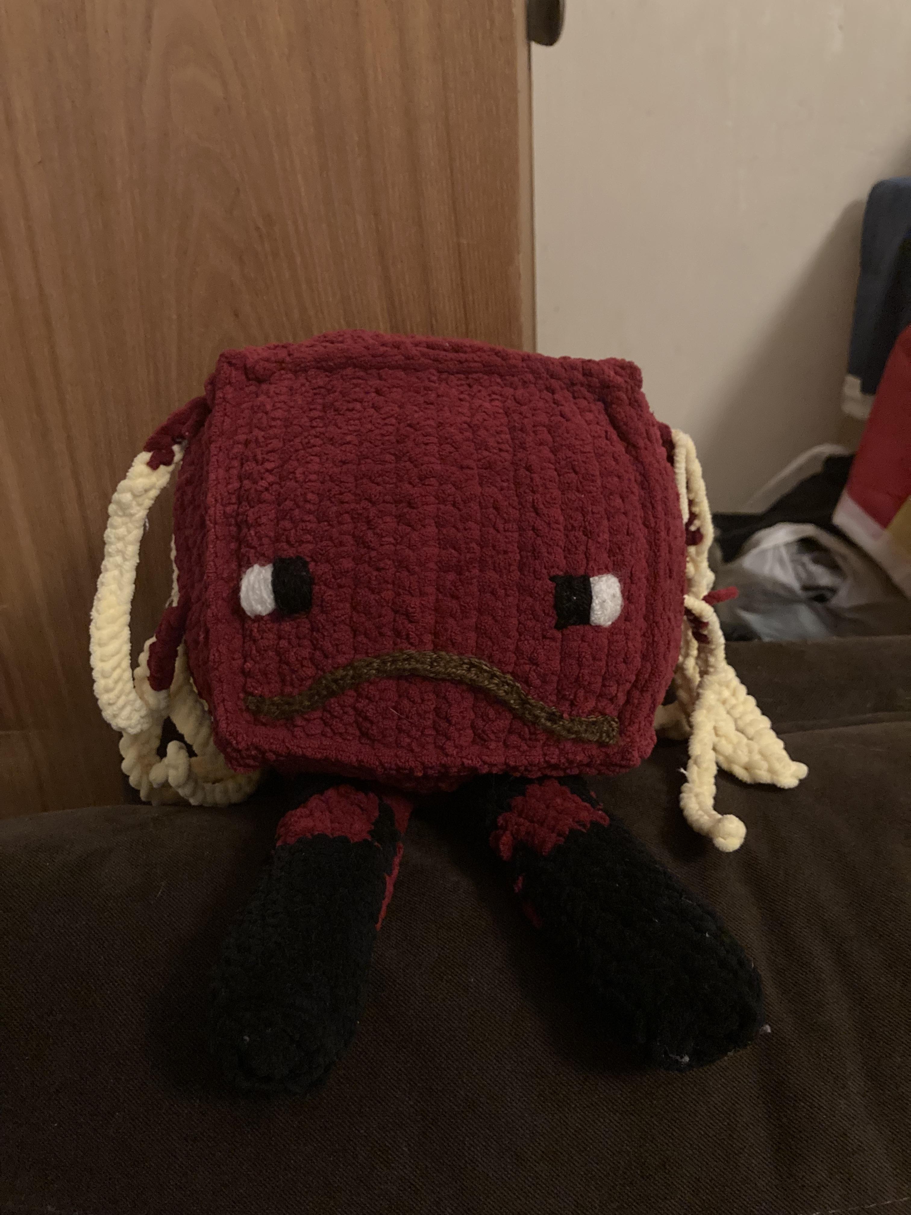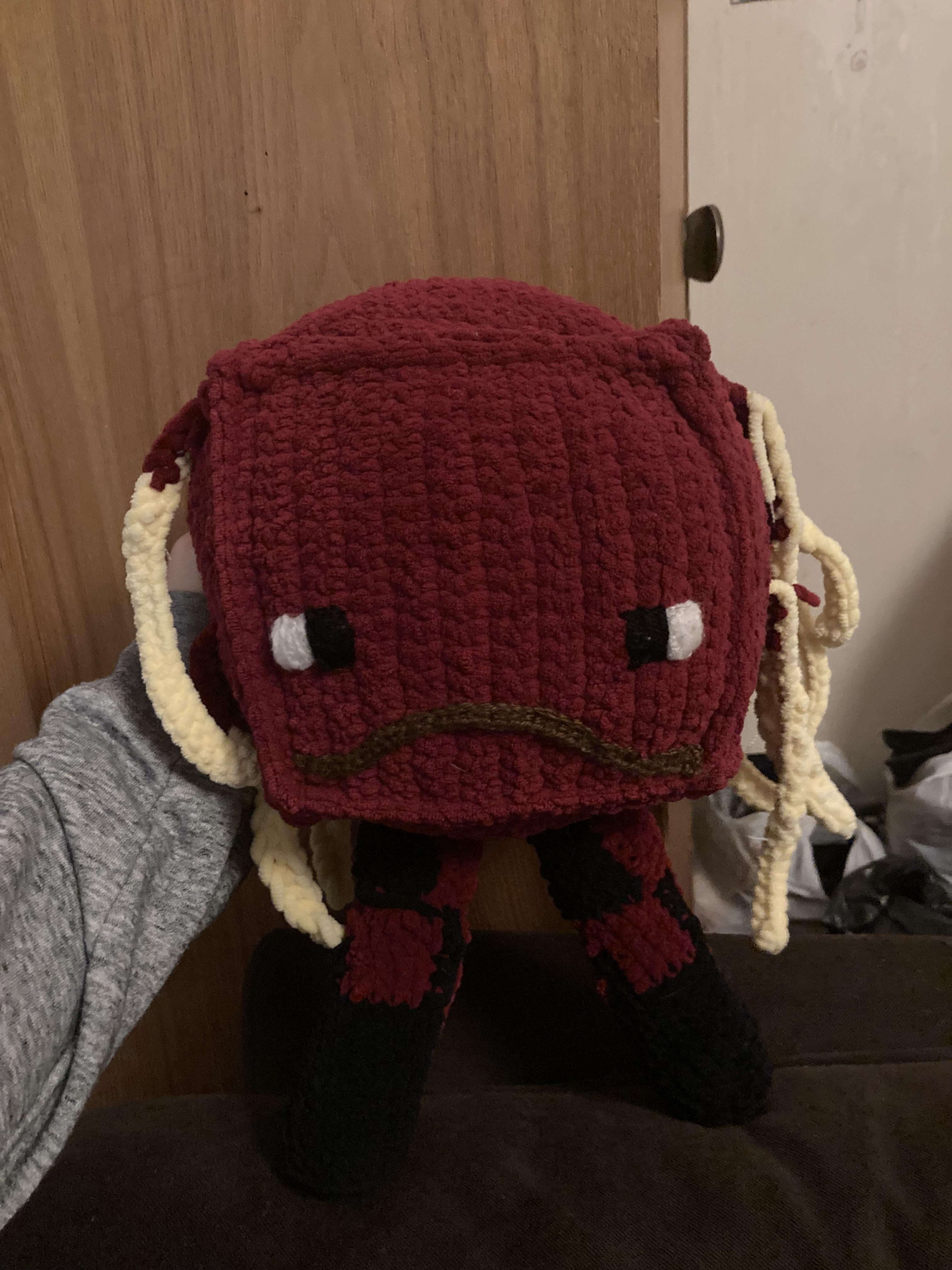 Pictures of a Strider plushie my girlfriend crocheted.