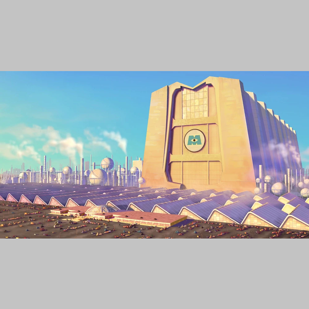 Pixars Monsters Inc. factory building