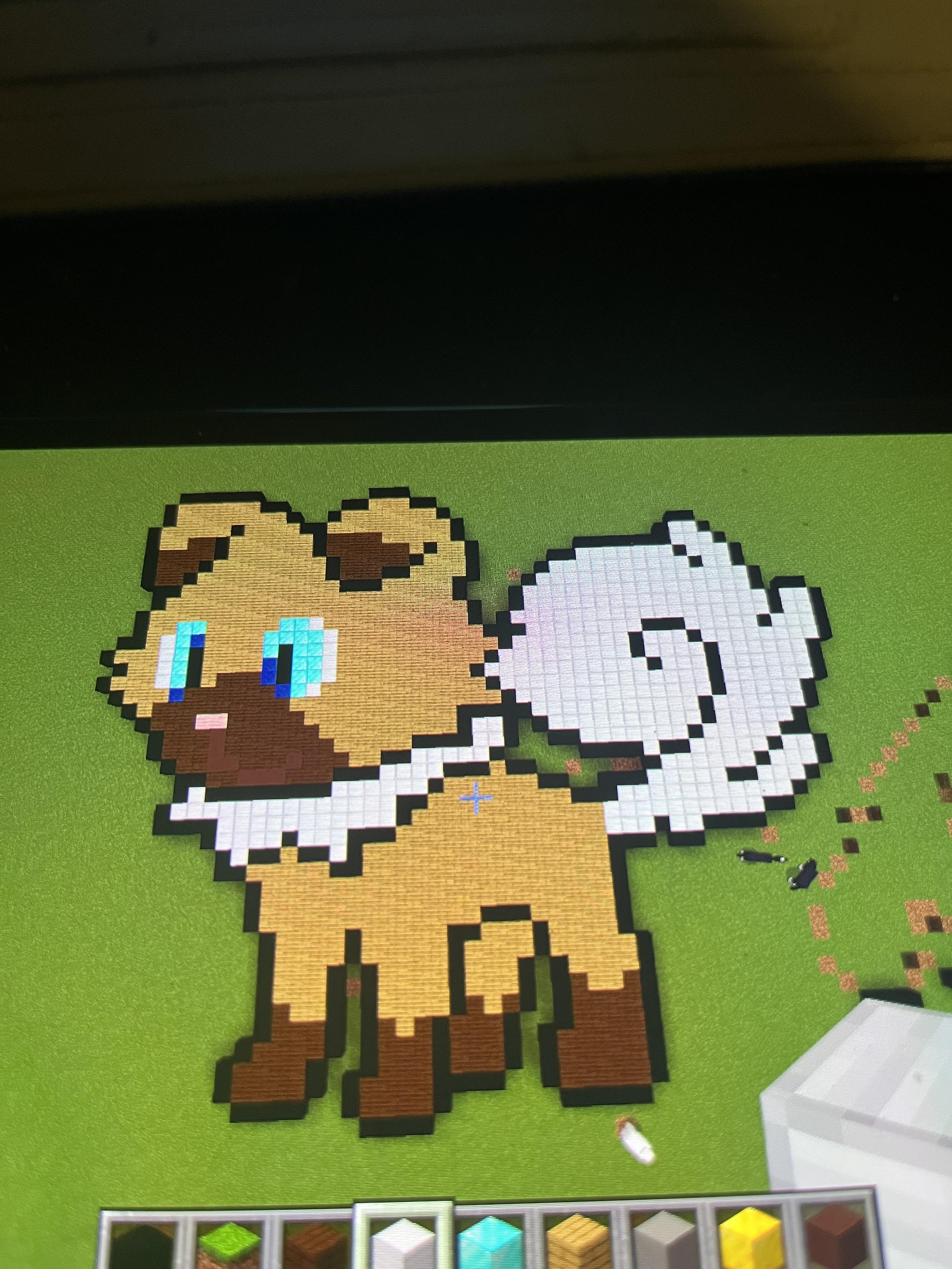 rockruff and shiny rockruff pixel art i just made in minecraft