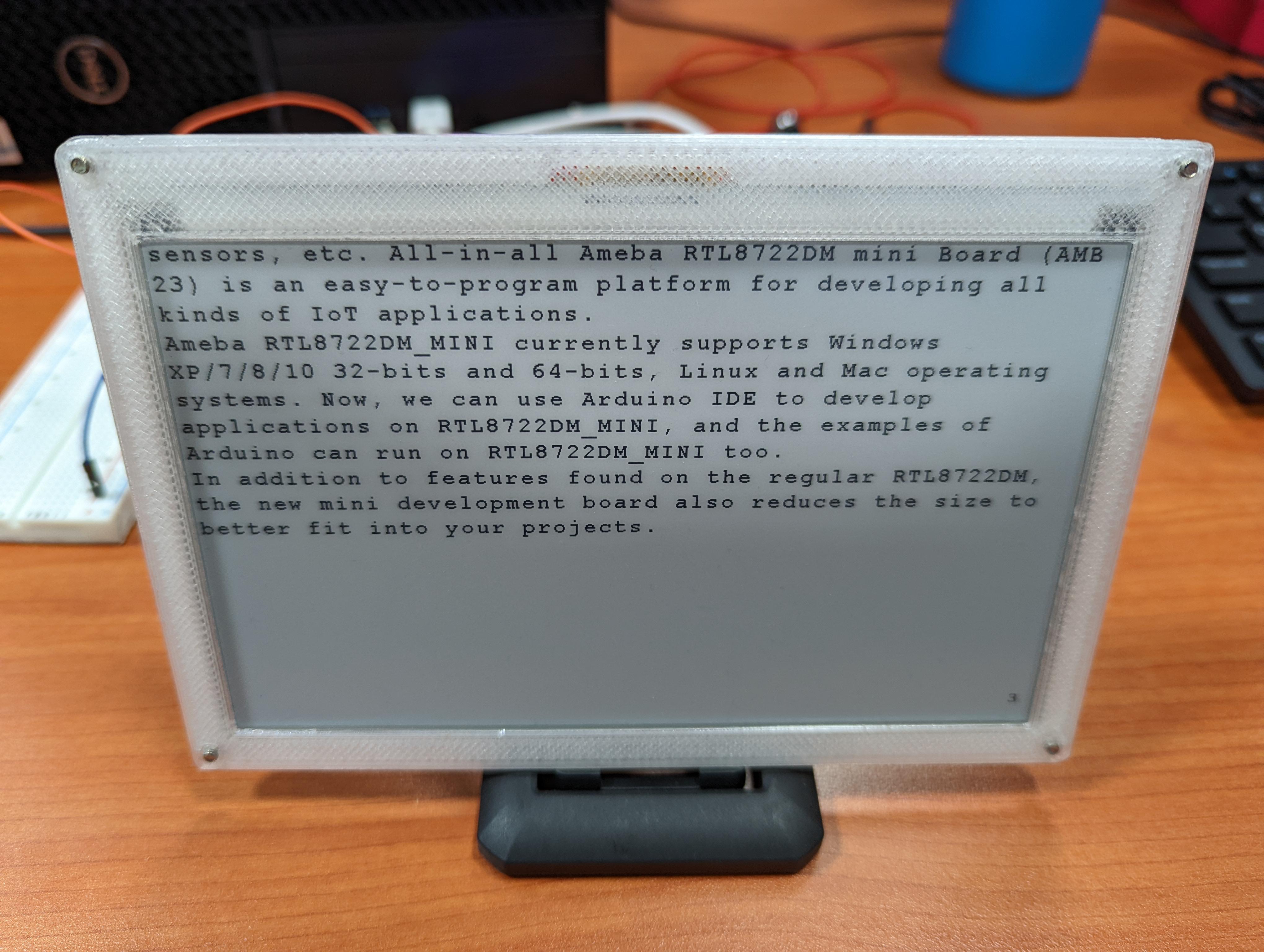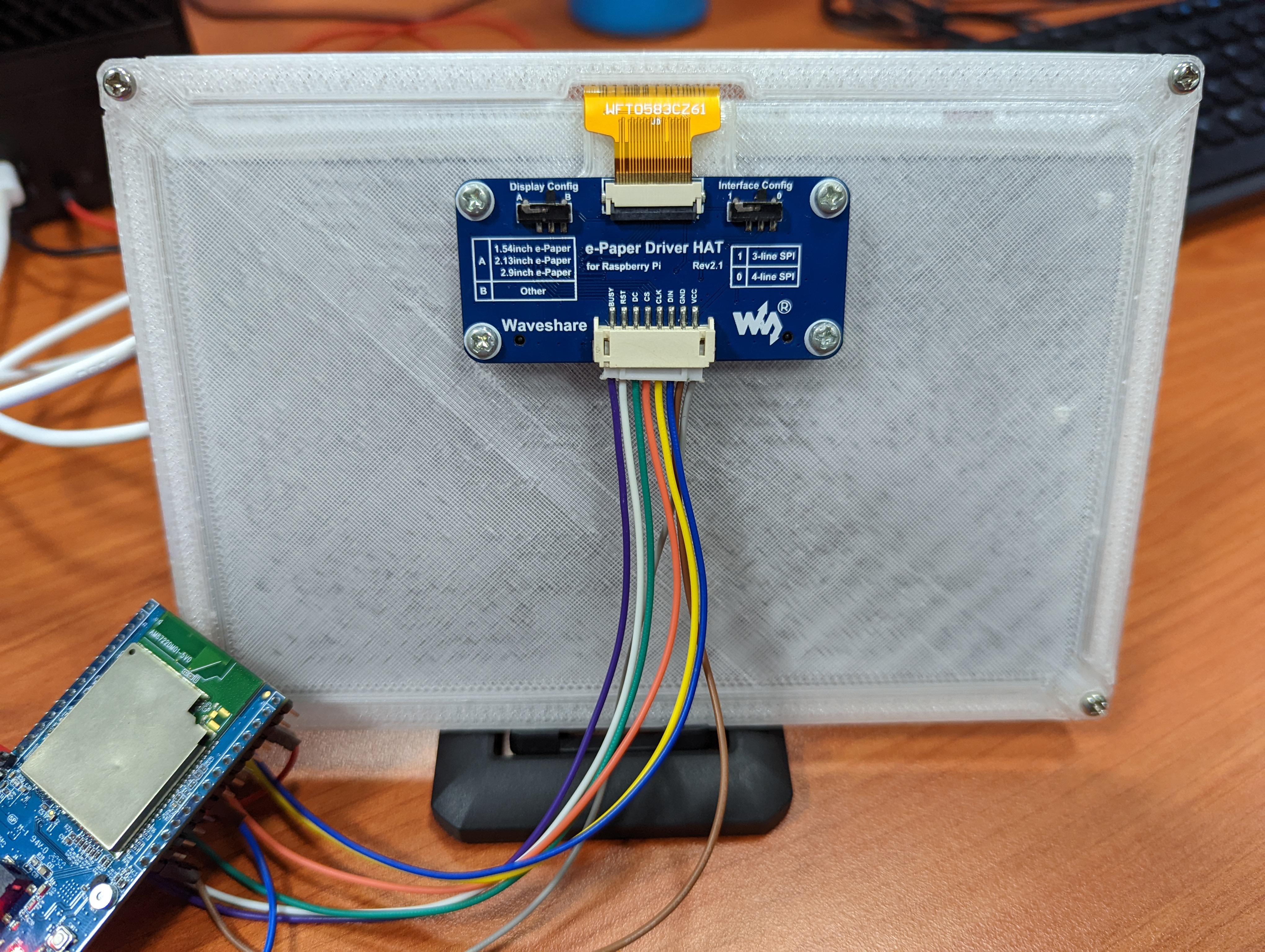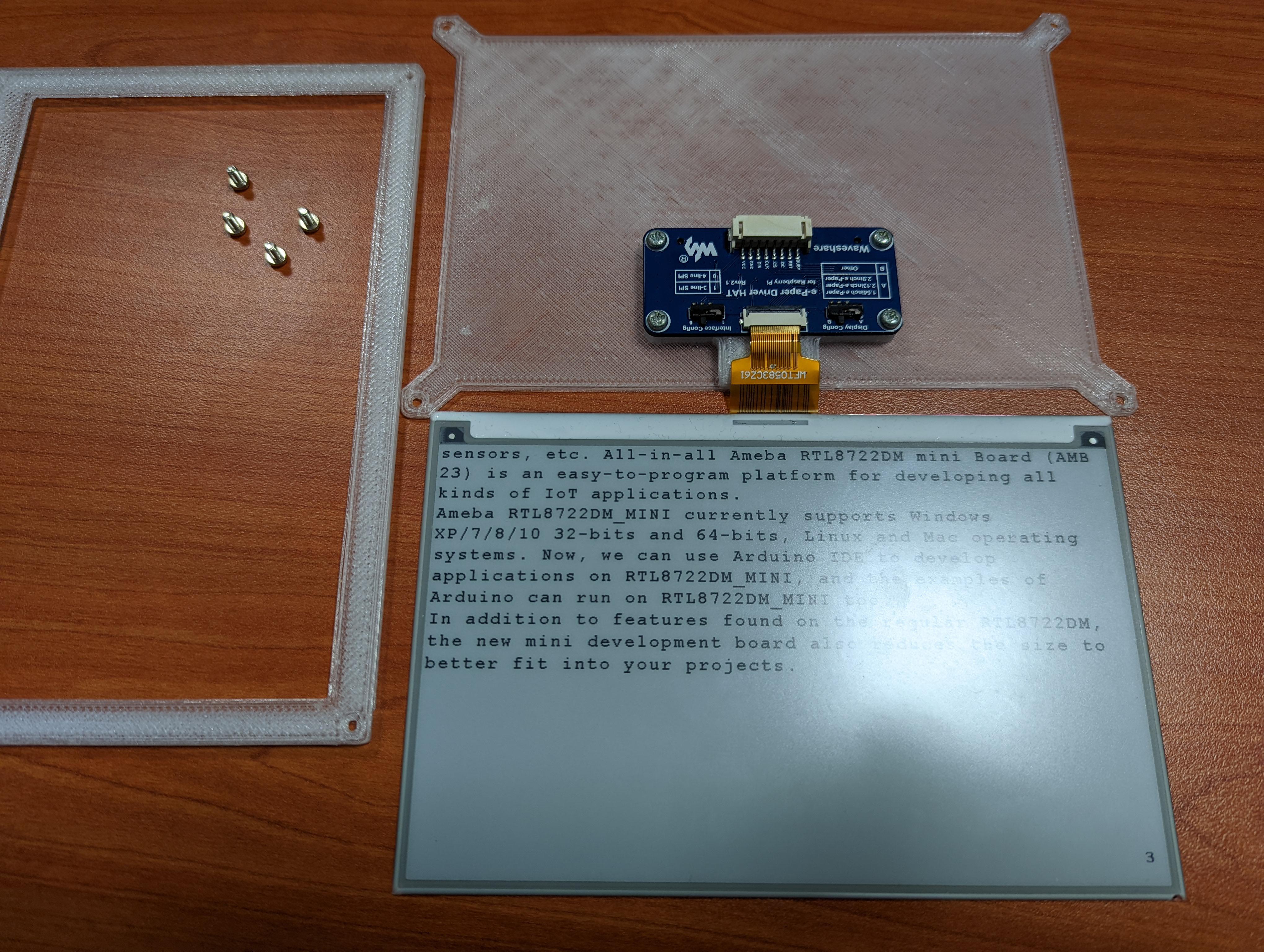 Simple 3D printed frame to protect the glass corners and ribbon cable of my e-Paper screen, for a text reader project.