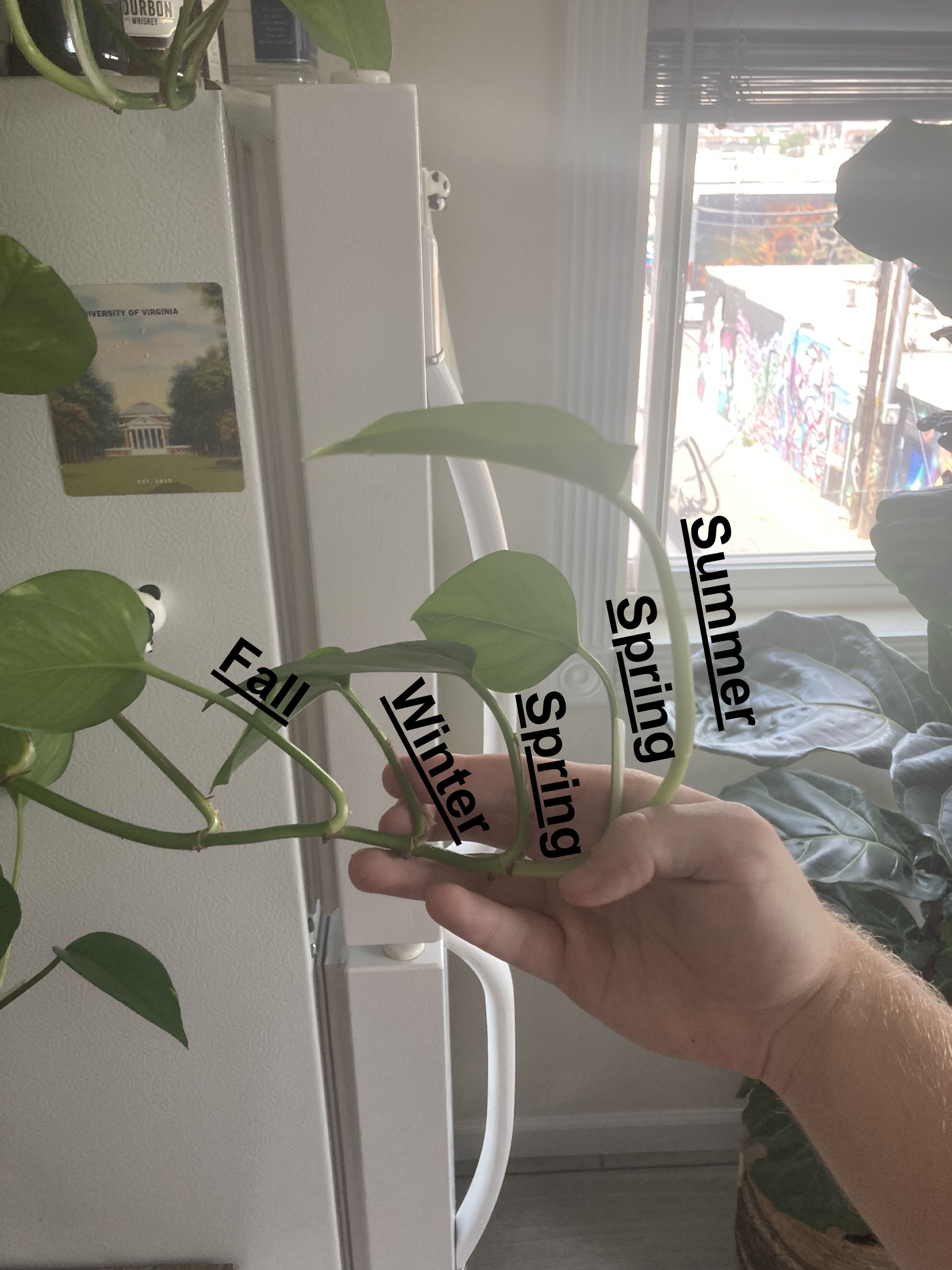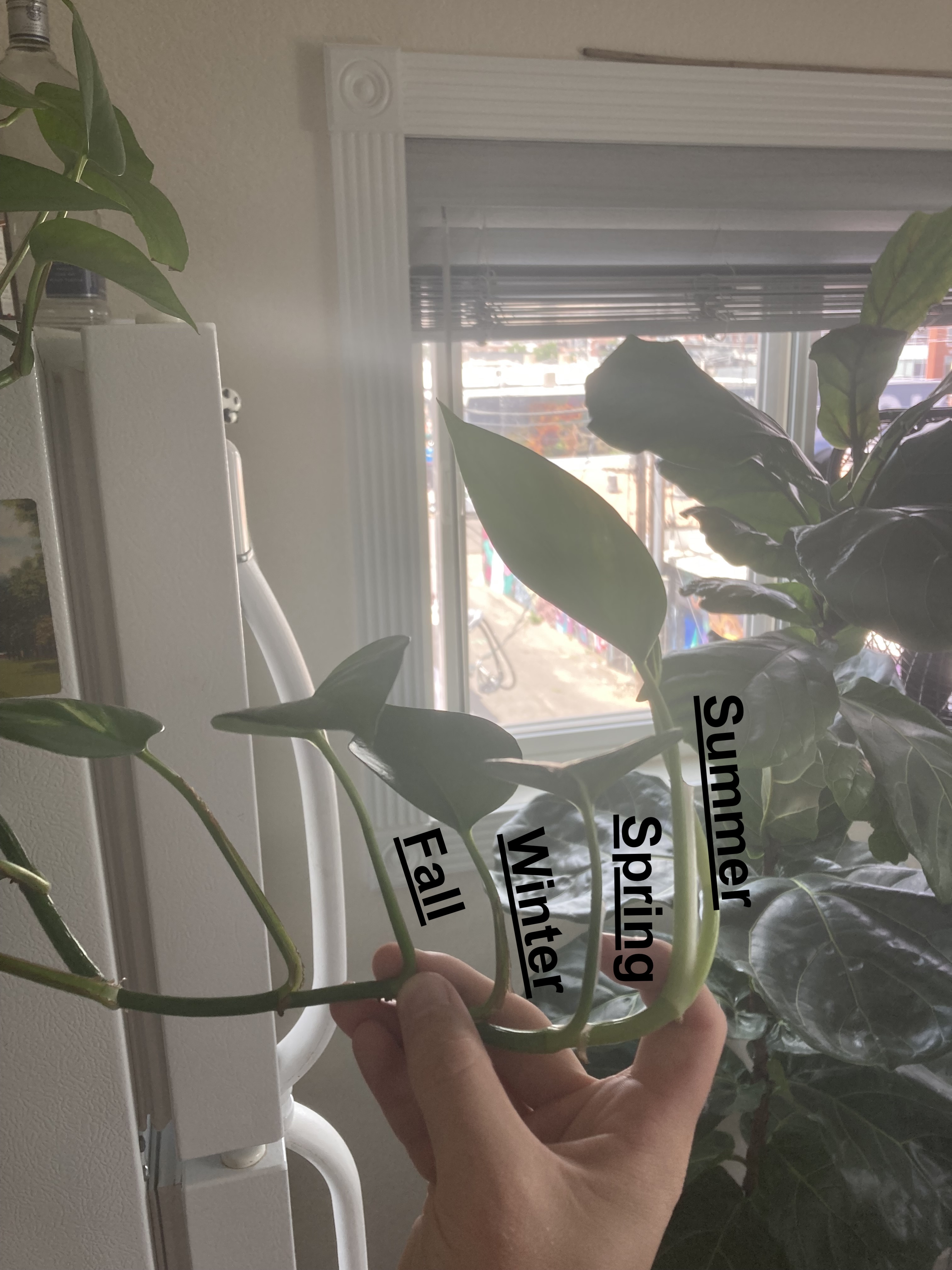 Since I got a pathos vine last fall, the length of each new leaf has been correlated with the temperature of my apartment during growth (I use heat/AC very sparingly)