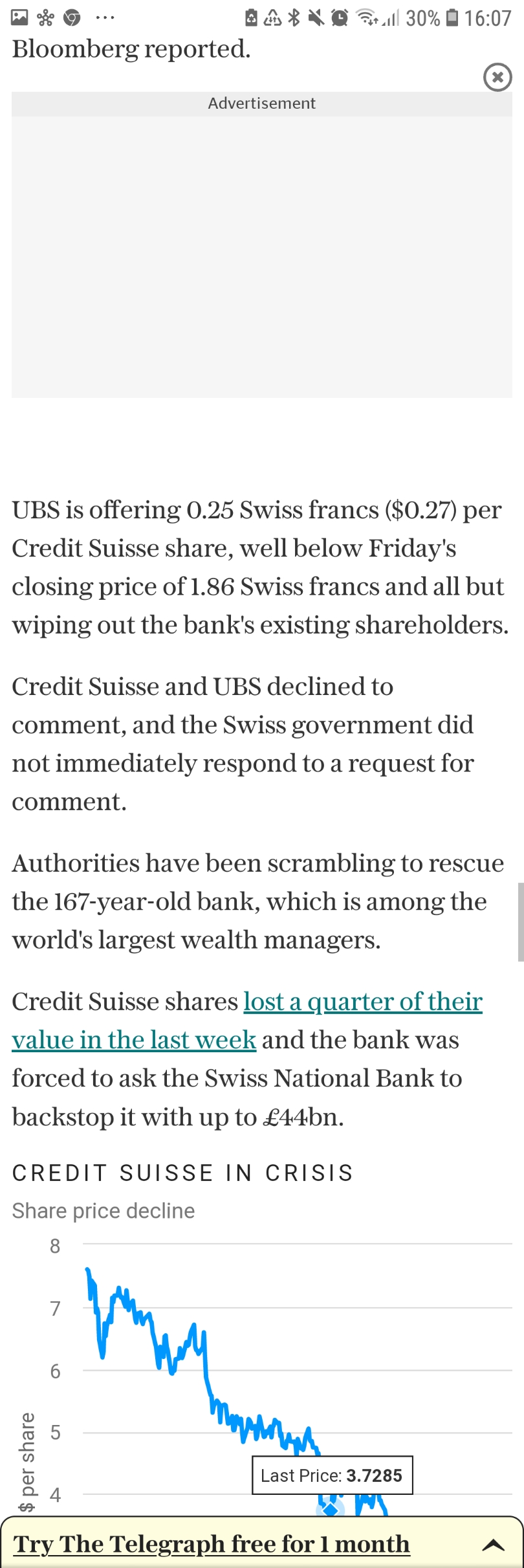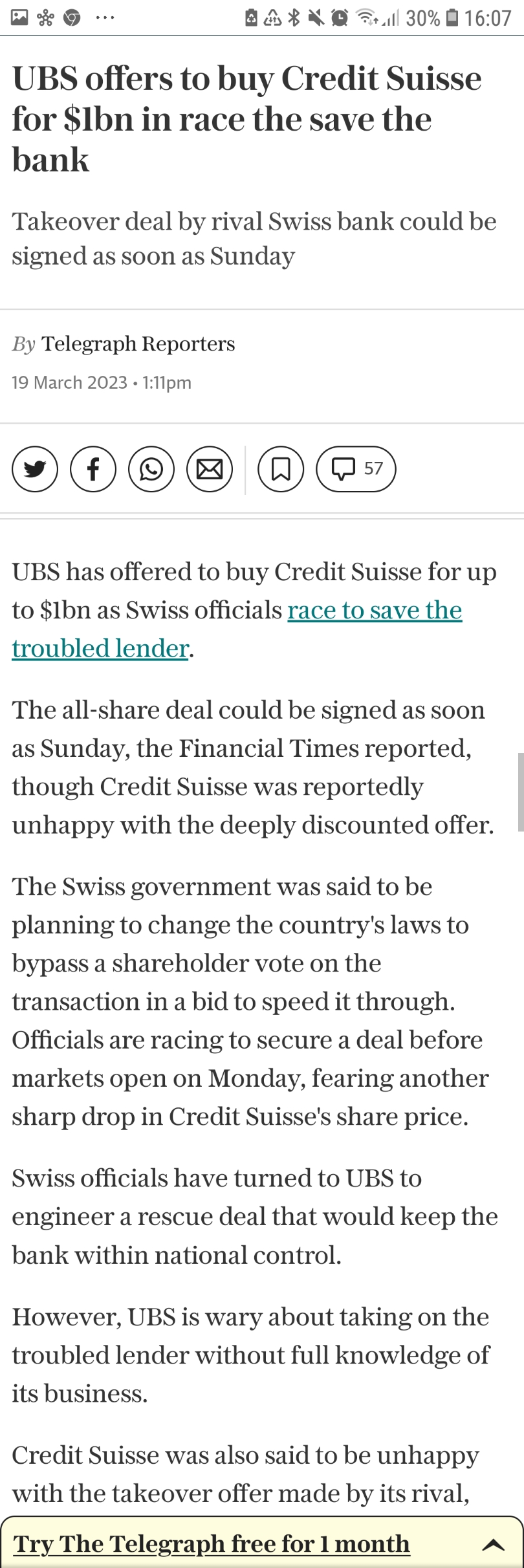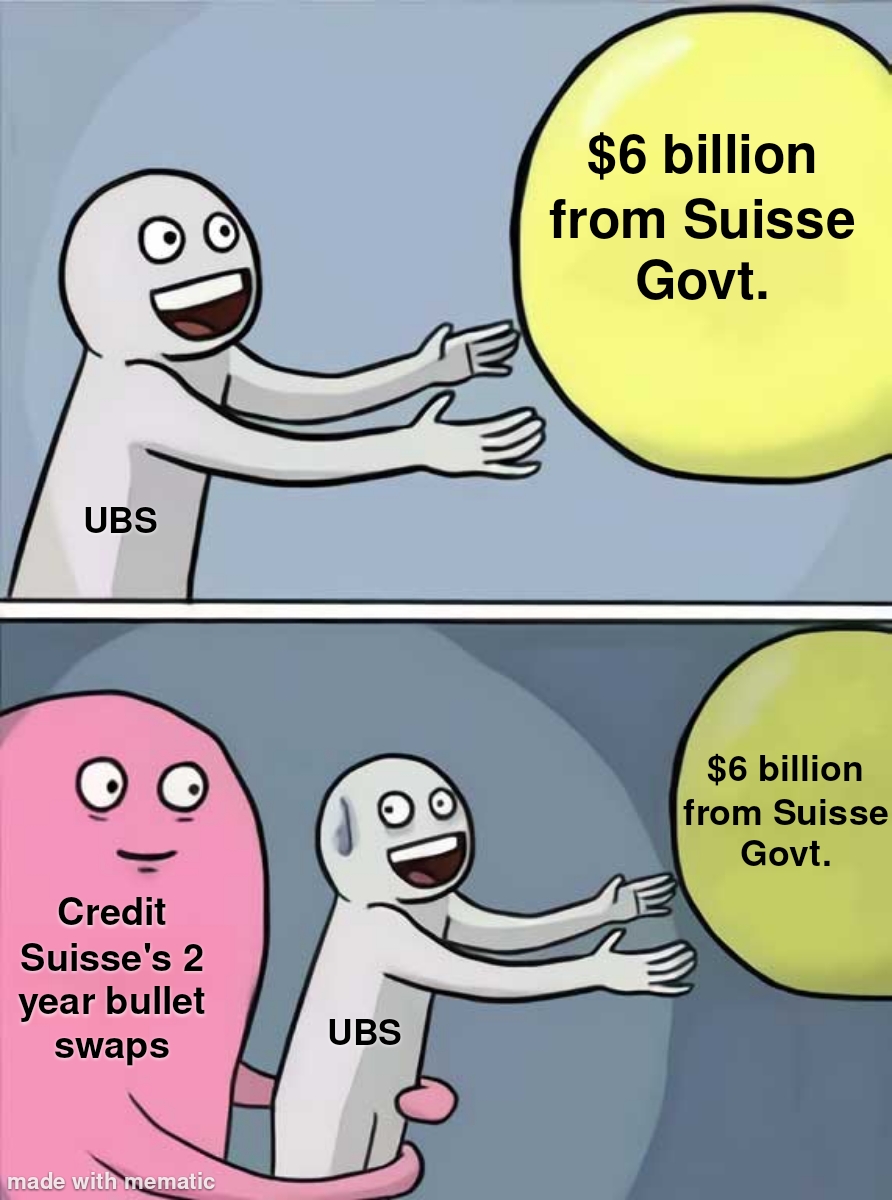 So the Suisse government are expected to change the law to enable UBS to takeover Credit Suisse today (Sunday) by bypassing shareholders. Looks like desperate times really do require desperate measures.