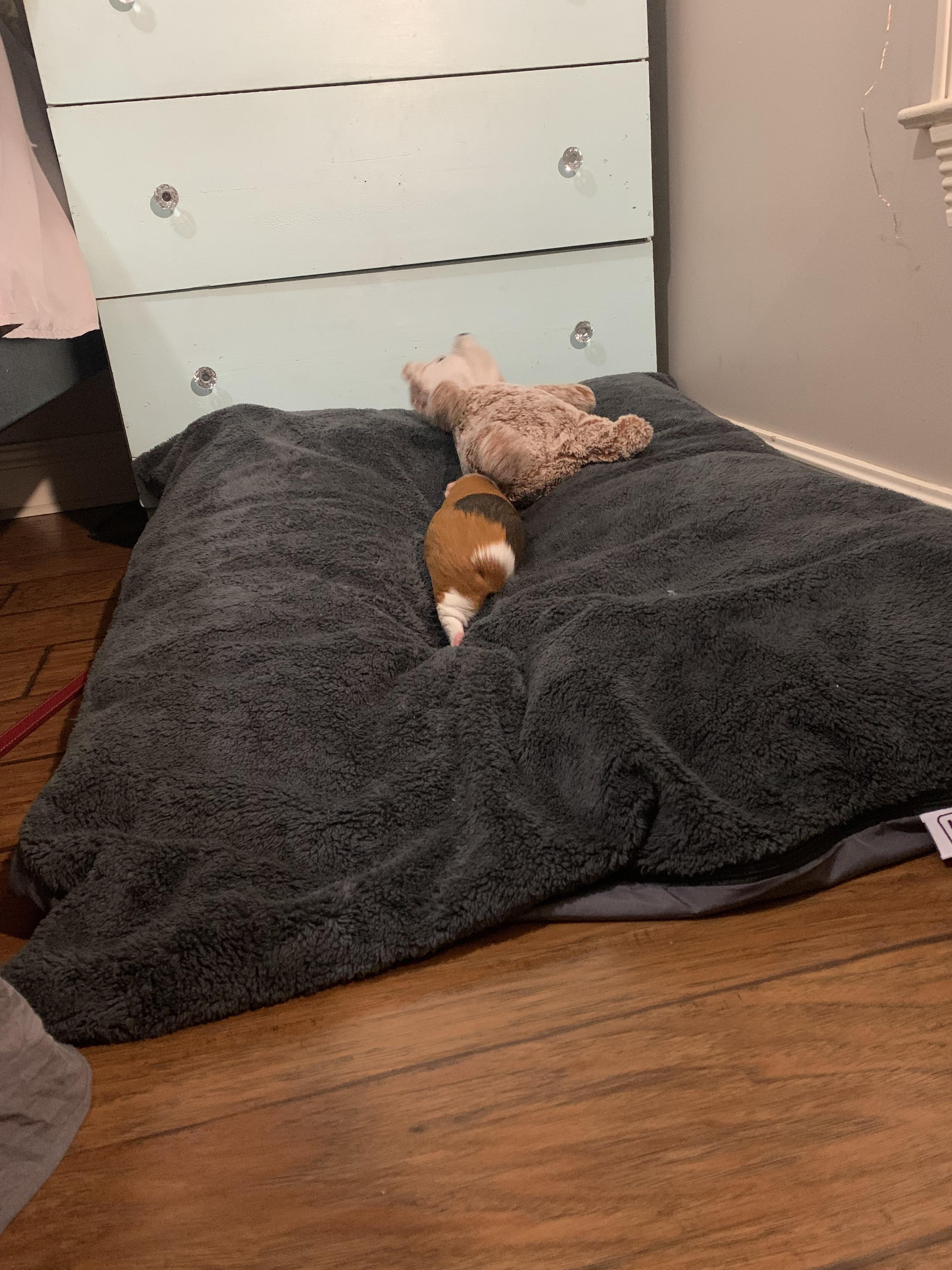Some photos of the girls playing outside the cage! They found a new addition to the dogs bed… 😂