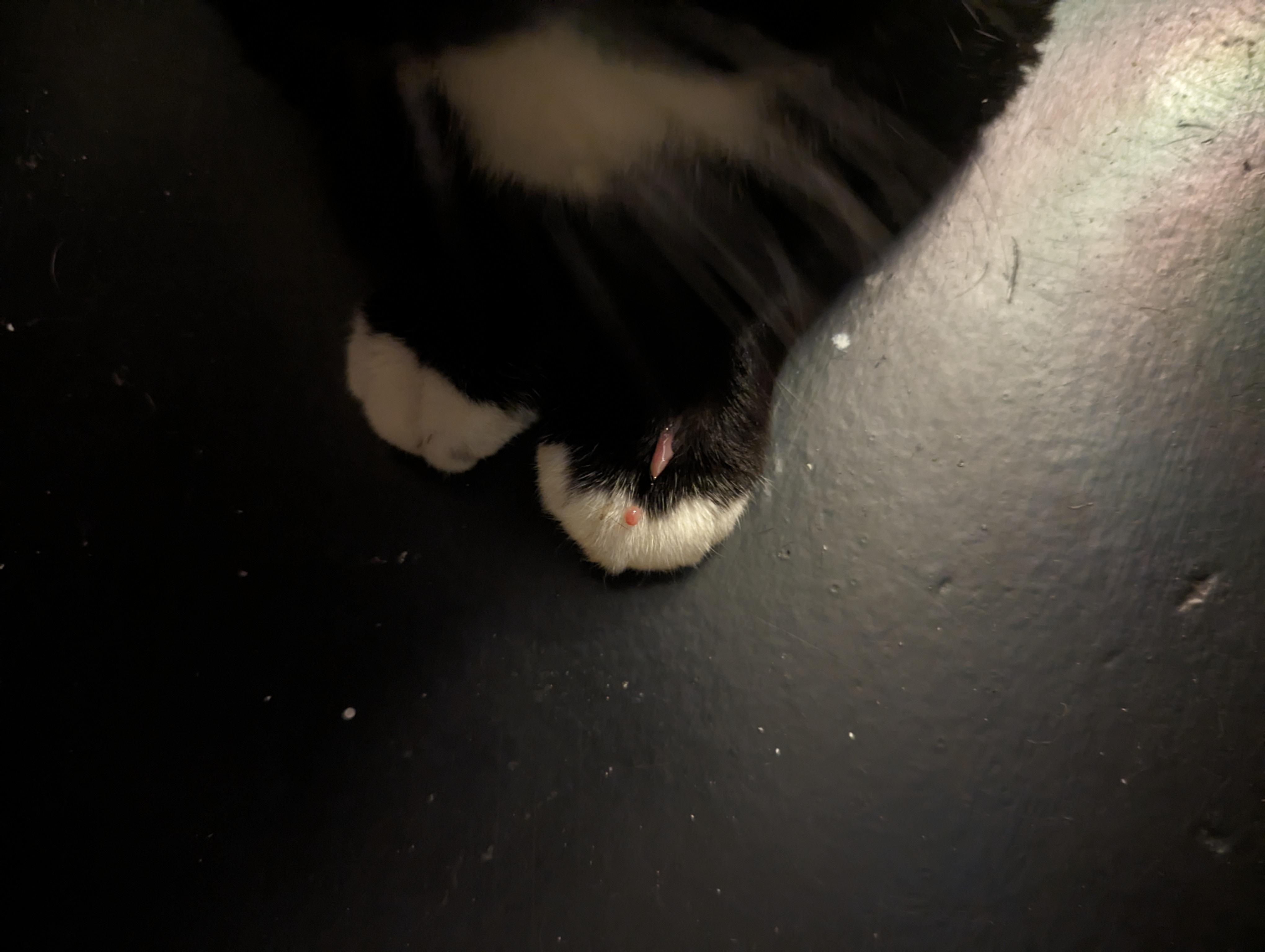 Stray cat hurt foot.