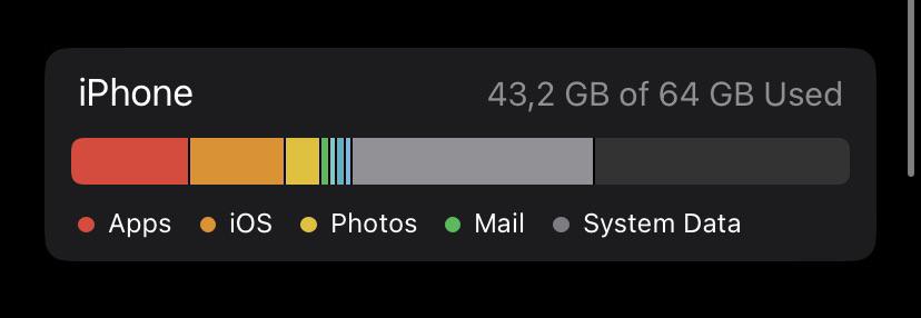 System files is taking about 20GB of space Why does system files take more than 1/3 of the memory space in a 64GB iPhone?