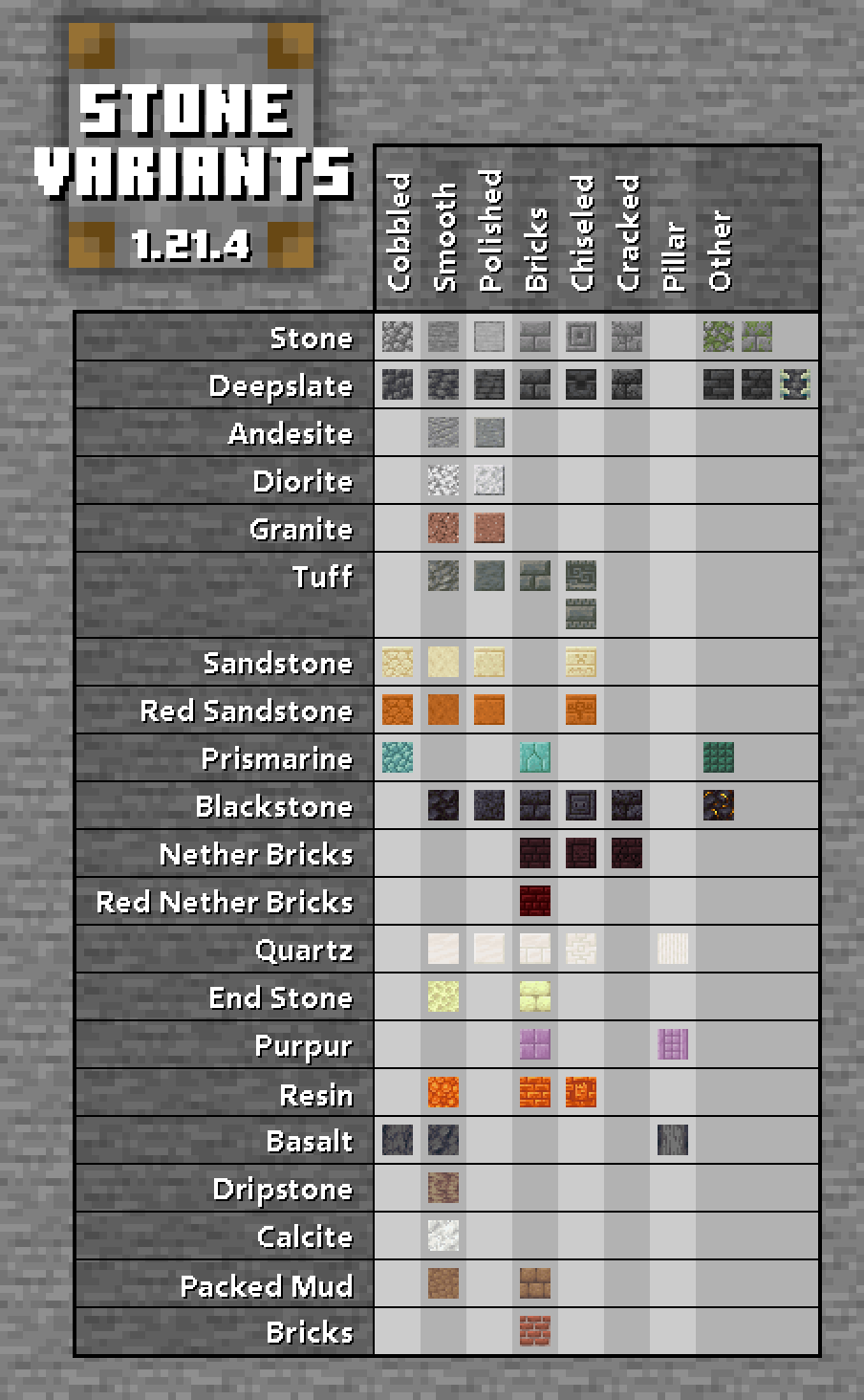 Table of stone variants in 1.21.4