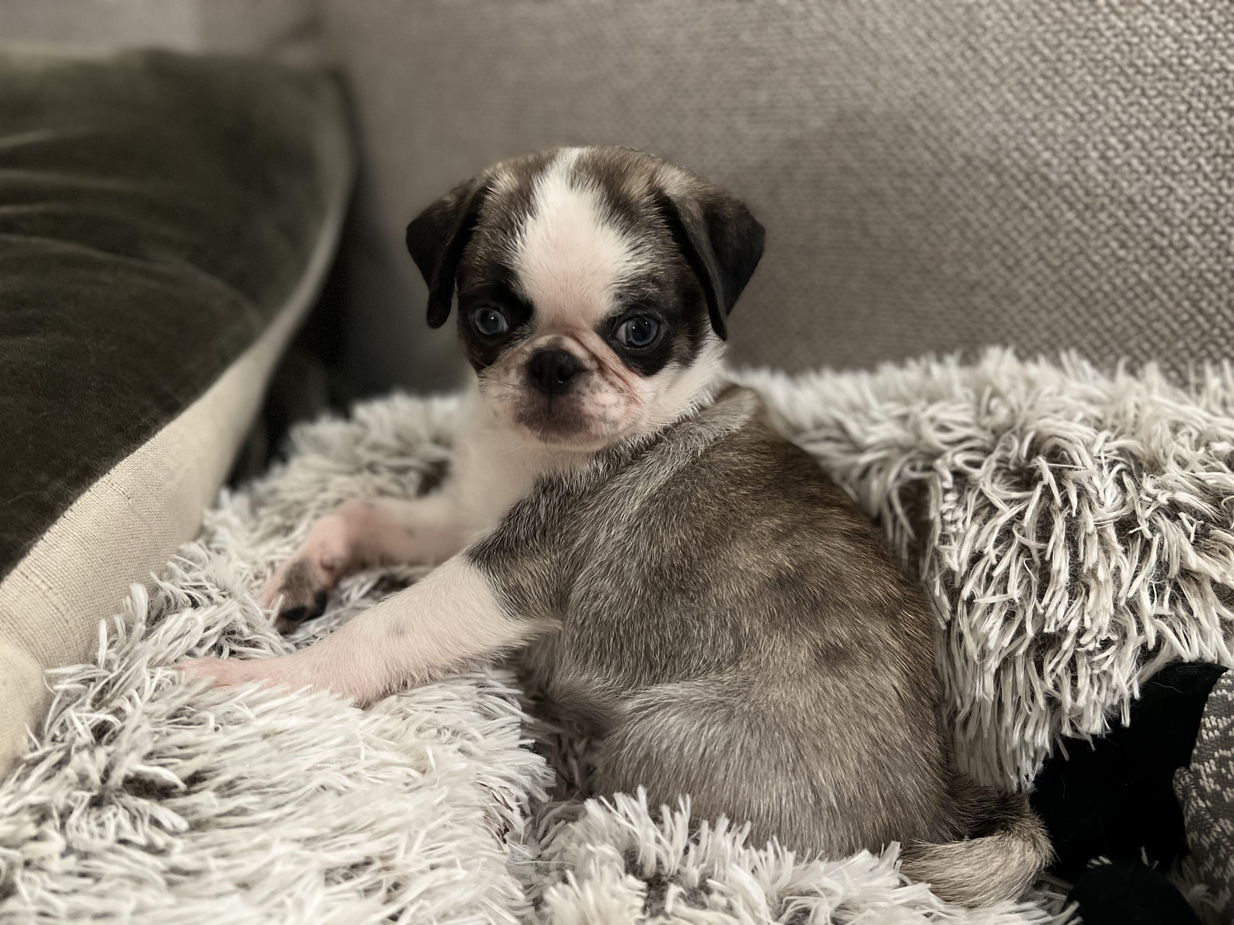 The newest addition to our family! Panda pug, Mandy (Mandolin)