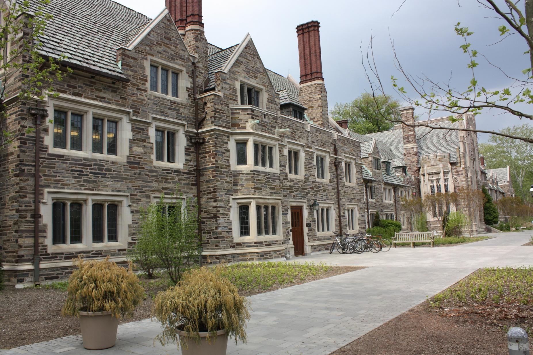 Two examples of the Collegiate Gothic style of architecture. The first photo shows Hamilton Hall of Princeton University of Princeton, New Jersey. The second photo is of Clocktower Quad at Duke University in Durham, North Carolina.
