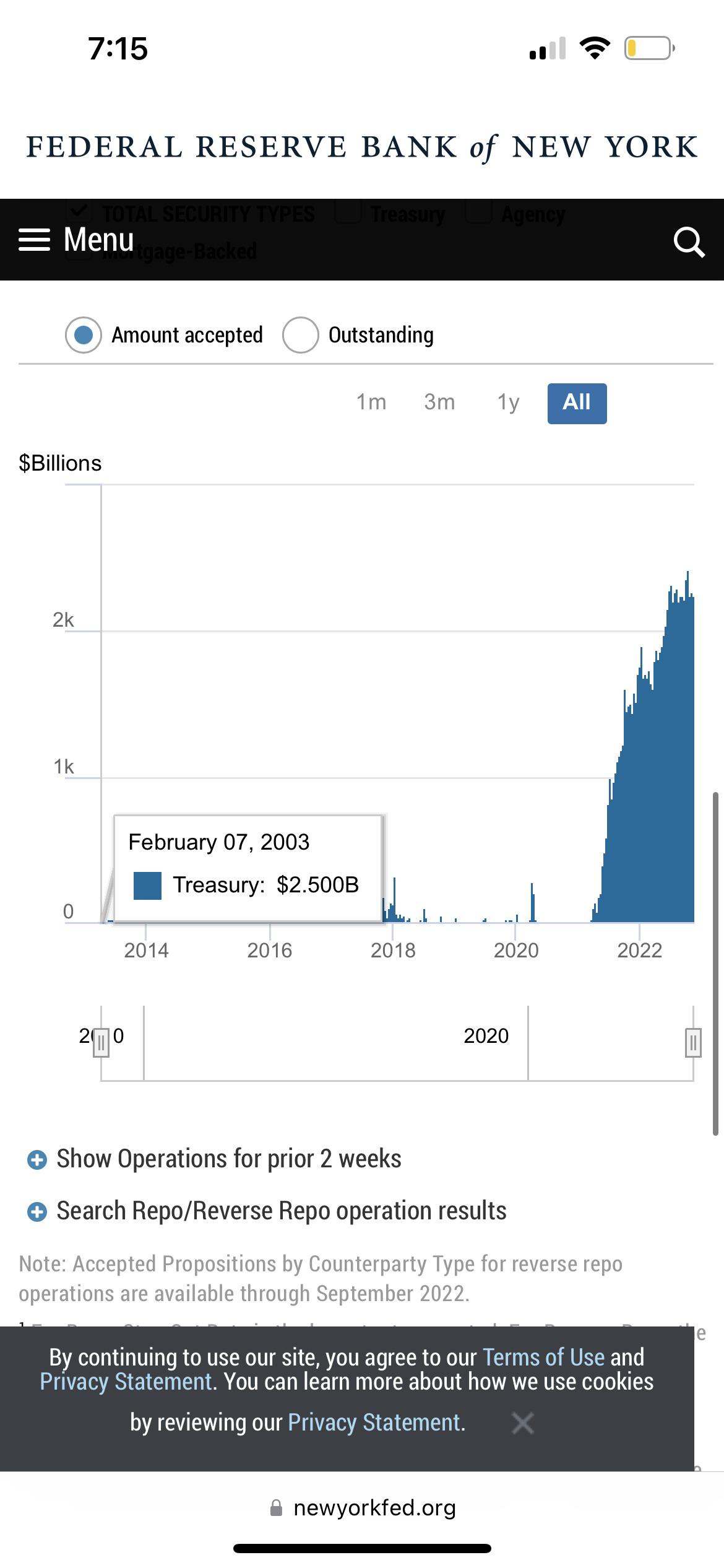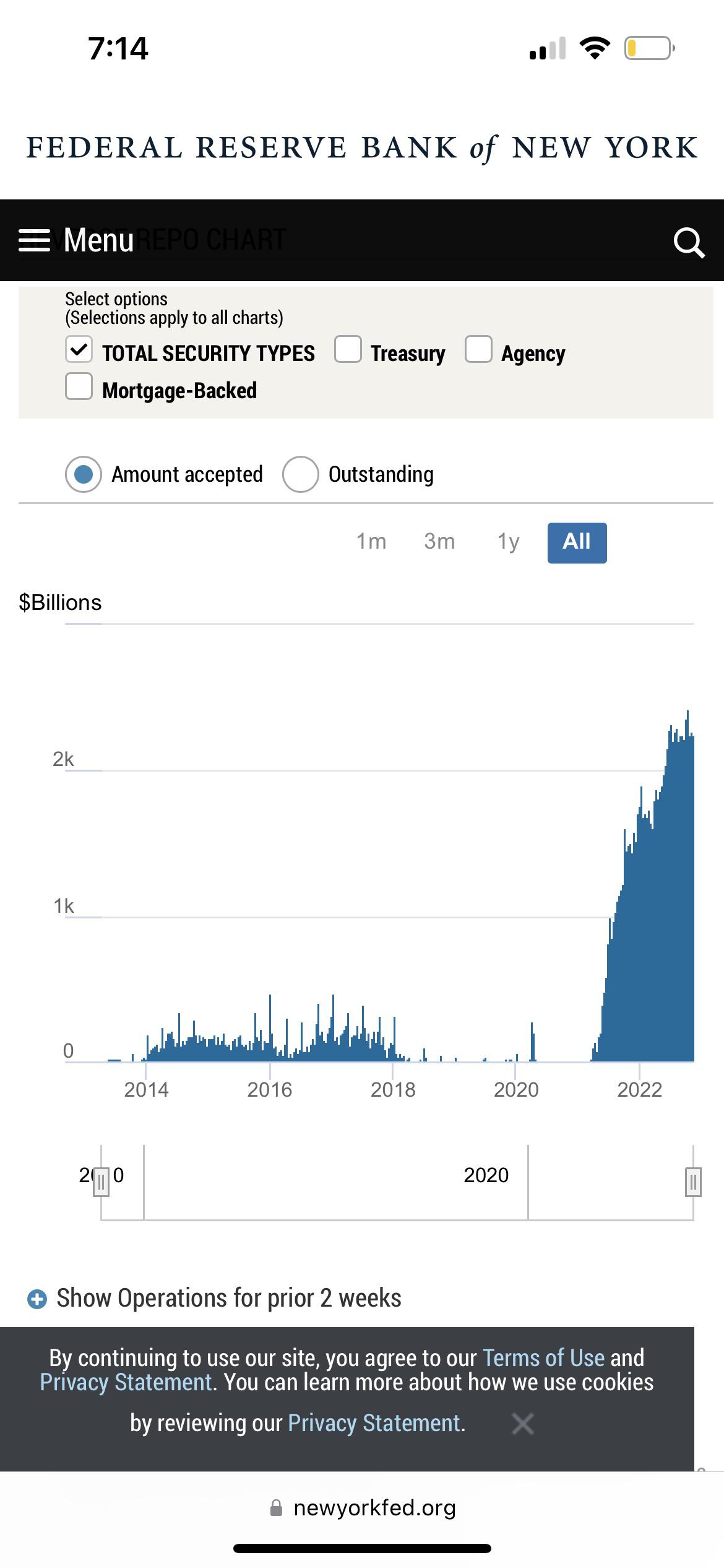 When things fall apart, remember that the Reverse Repo Program has been over a TRILLION DOLLARS A DAY SINCE AUGUST 2021. It is currently over 2.1 trillion. I’m not trying to take attention from daily repo guy, but I feel we have not given enough attention to this.